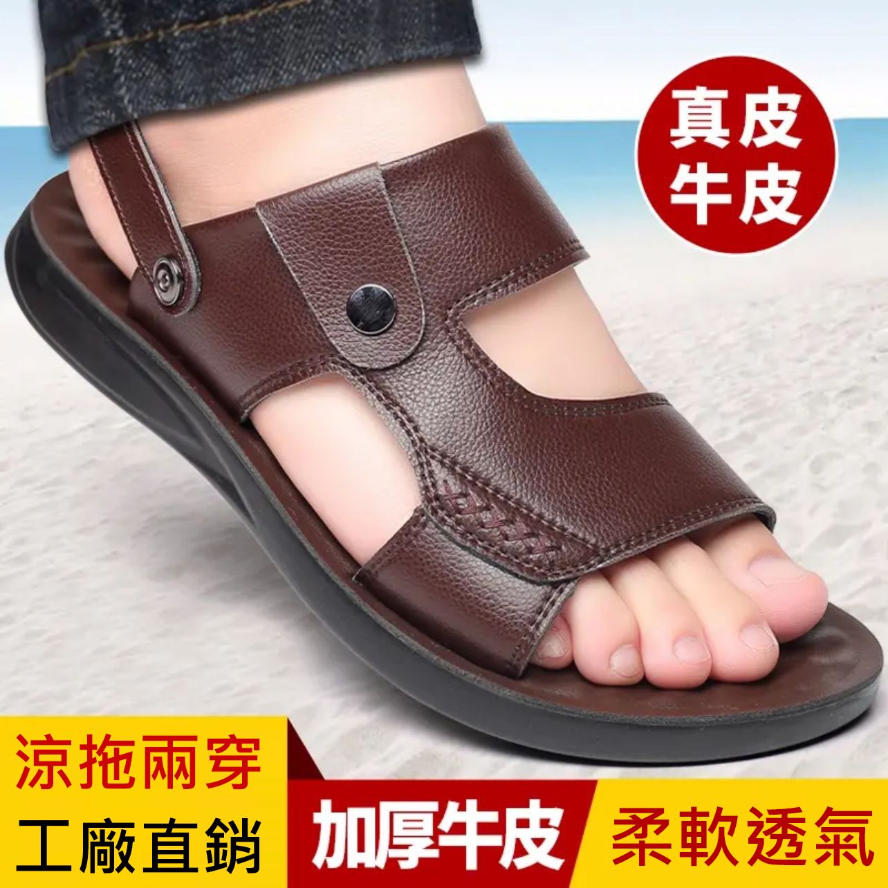 【爆賣8875雙!!頭層牛皮】夏季新款一鞋兩穿防滑耐磨涼鞋