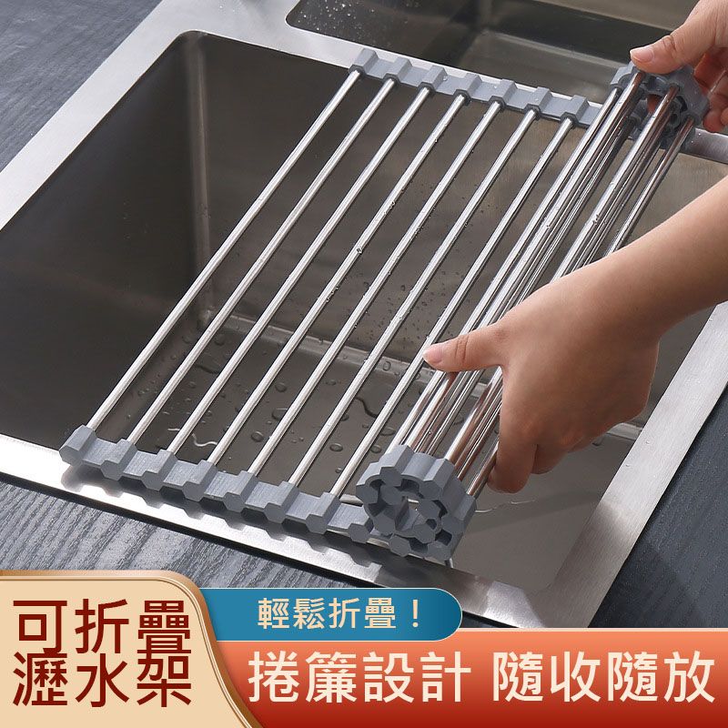【廚房必備】304不鏽鋼可折疊瀝水架