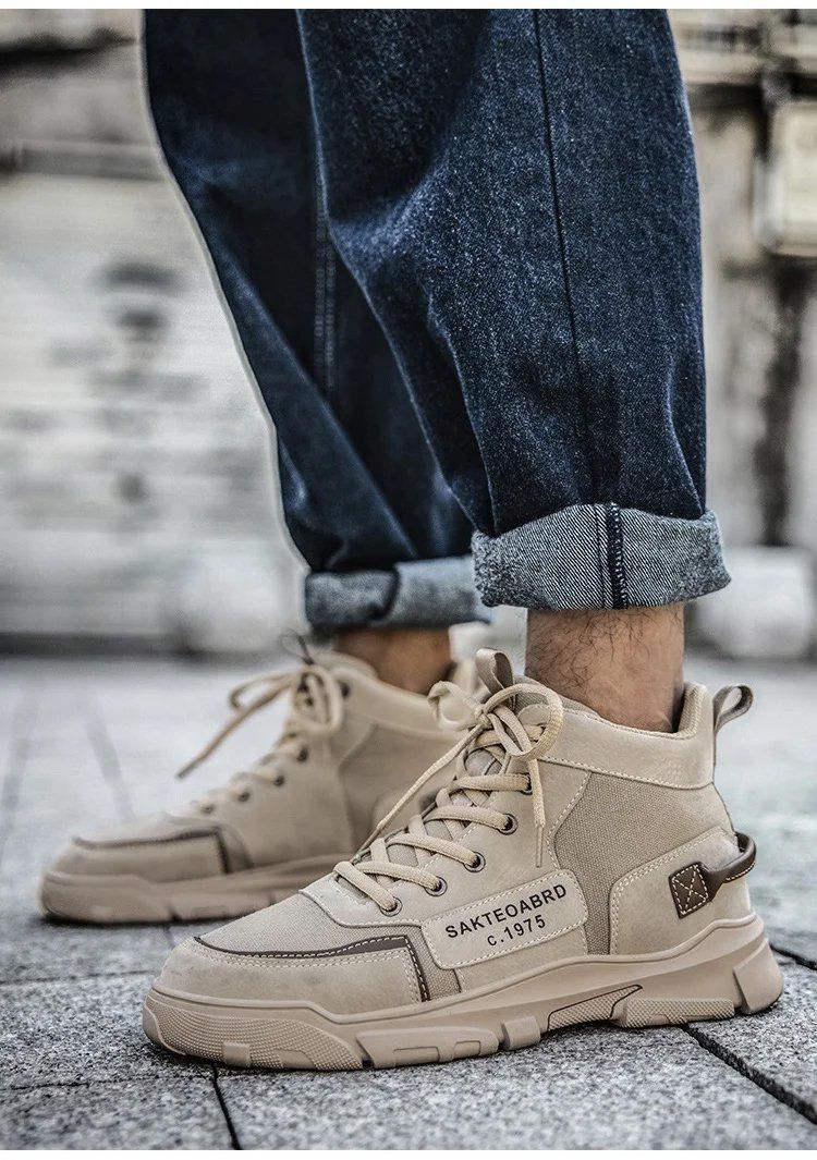 耐磨輕便百搭男士高幫馬丁靴【買一送一】卡其色兩雙(到手兩雙!每雙649元!)