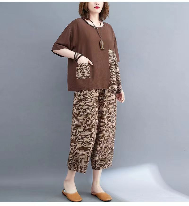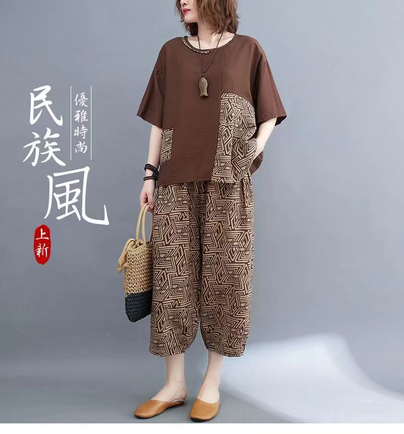 民族風純棉兩件套【咖啡色】+【黑色】各一組(優惠400,每套僅798元)