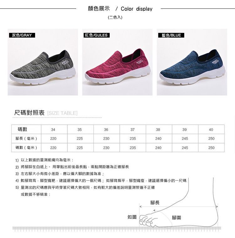 中老年休閒時尚女士運動鞋【紅色】+【藍色】各一雙(優惠400)