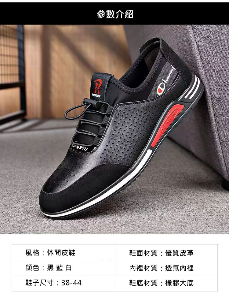 男士百搭鏤空軟皮軟底皮鞋【買一送一】【黑色】+【白色】各一雙
