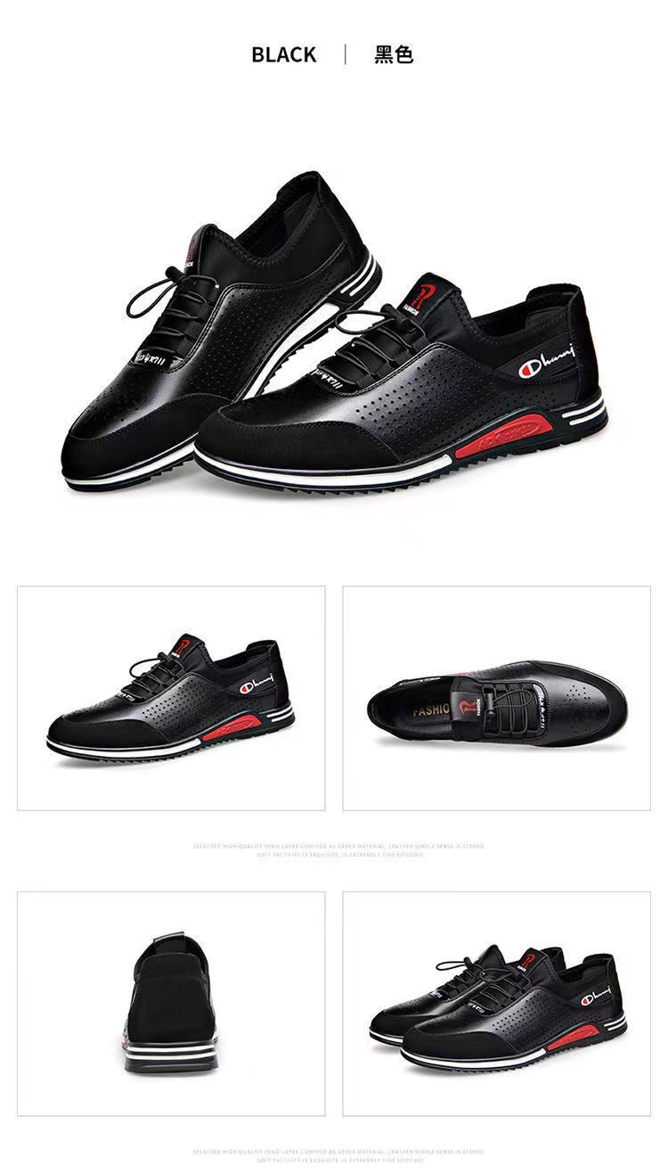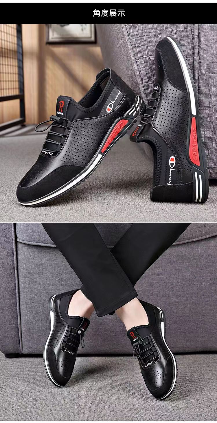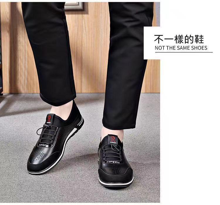 男士百搭鏤空軟皮軟底皮鞋【買一送一】【黑色】兩雙