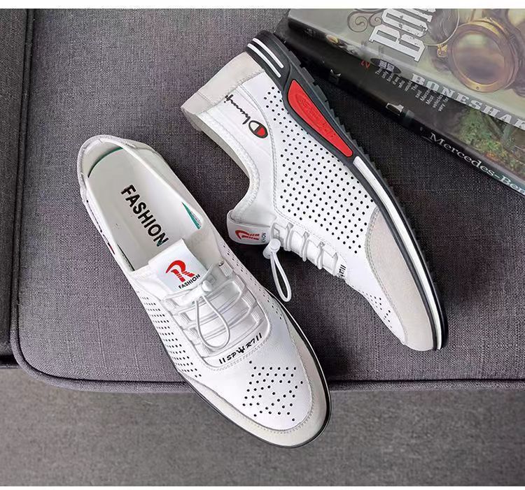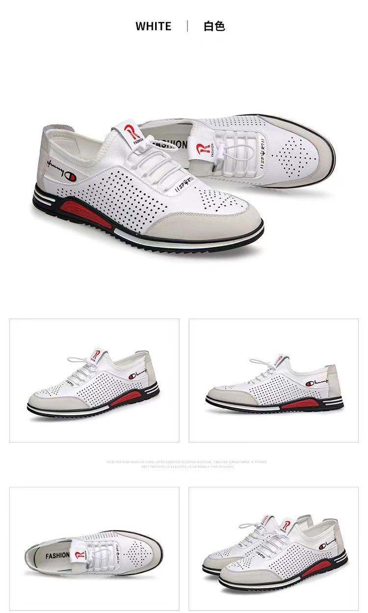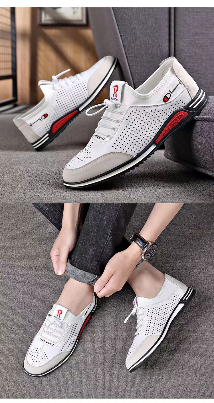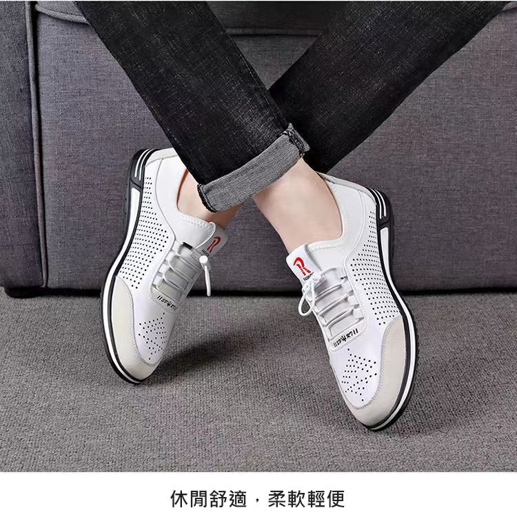 男士百搭鏤空軟皮軟底皮鞋【買一送一】【白色】兩雙