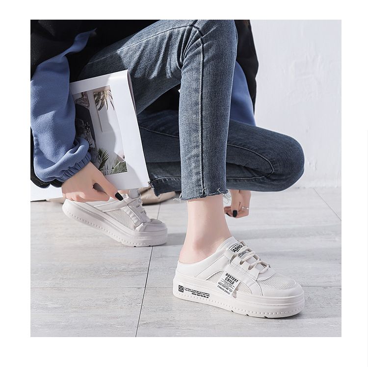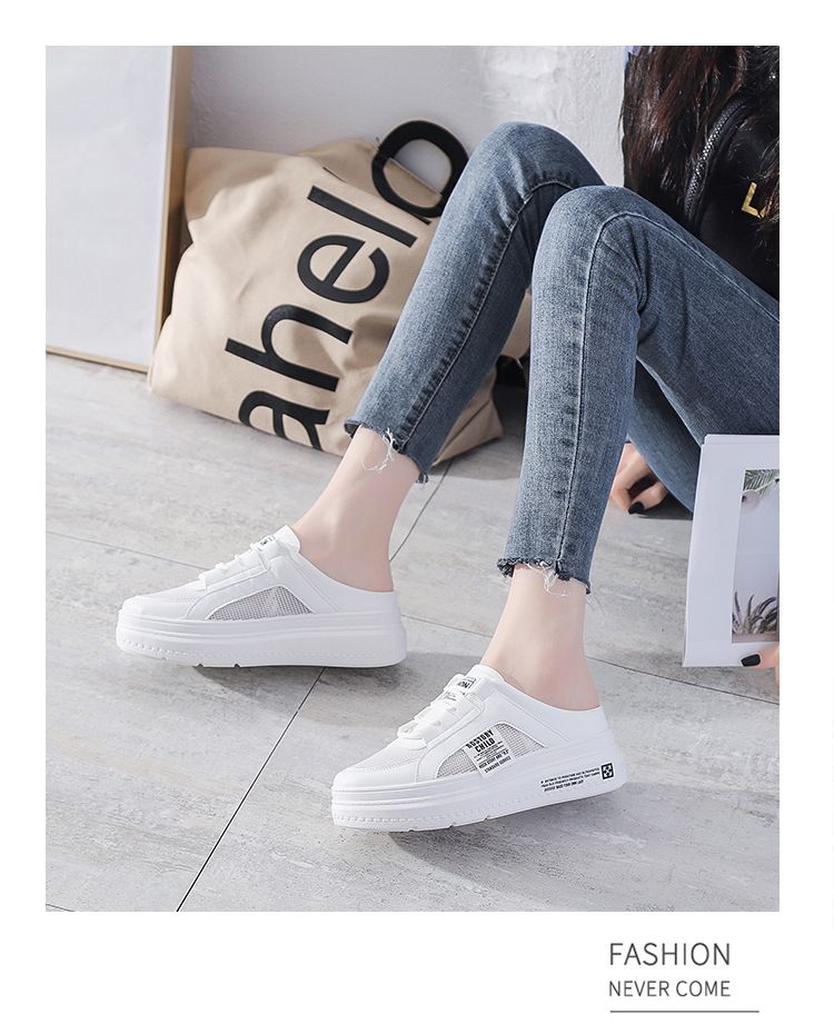 【懶人一腳蹬!】新款女士夏季網面包頭半拖鞋【白色】+【粉色】各一雙(優惠400)