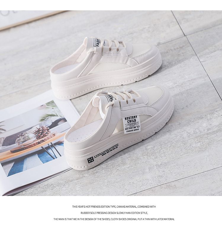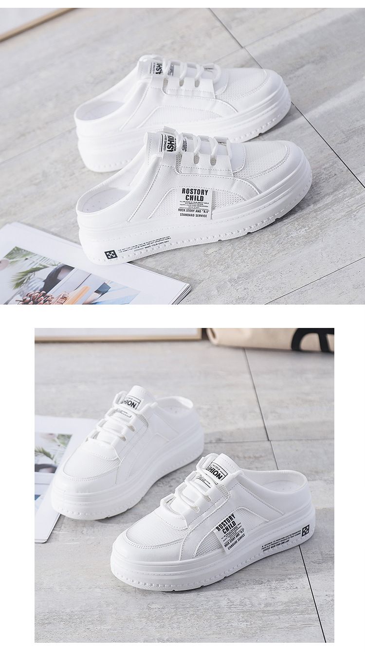 【懶人一腳蹬!】新款女士夏季網面包頭半拖鞋【白色】一雙