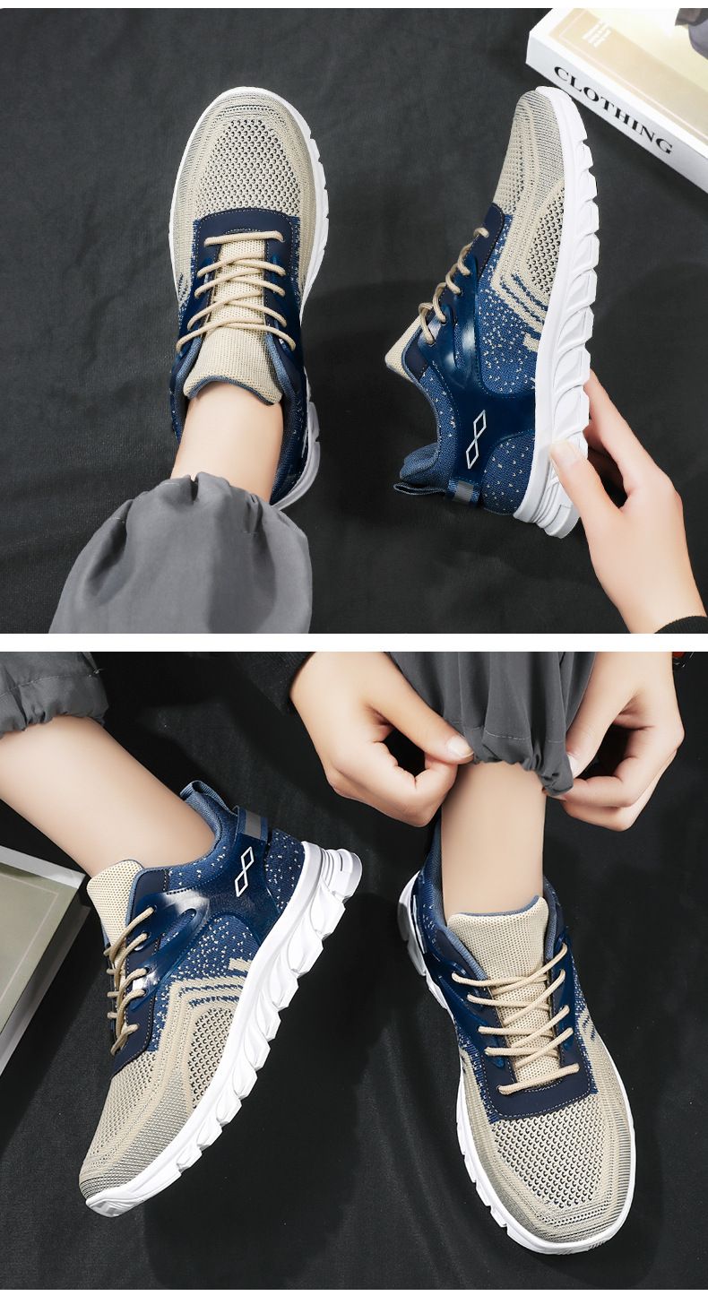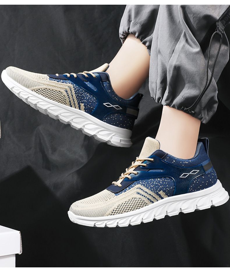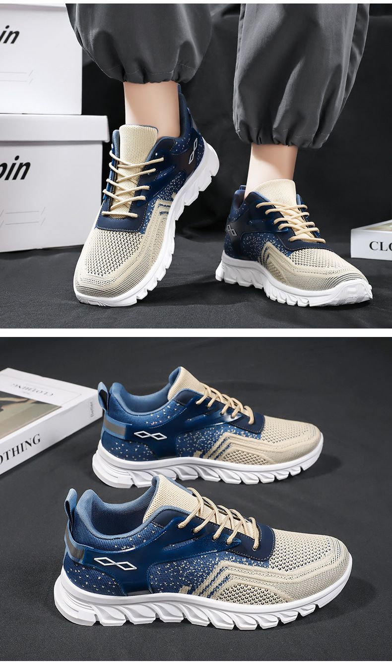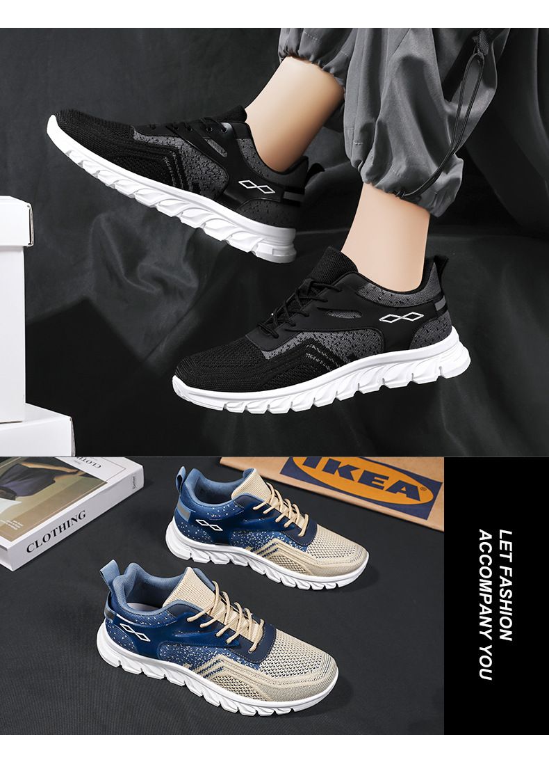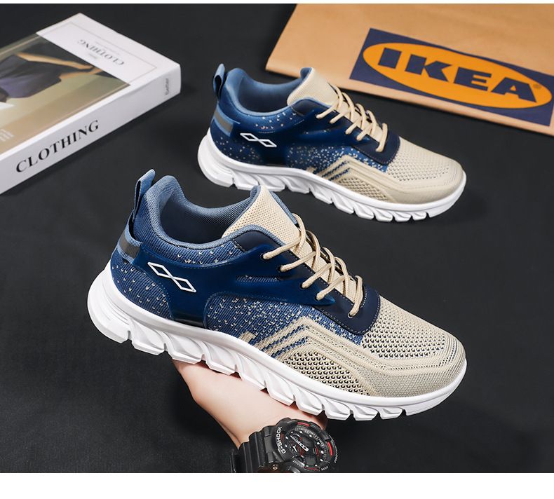 【雨天濕地不打滑!】男士軟底透氣飛織運動鞋【米藍色】+【黑色】各一雙(優惠400)