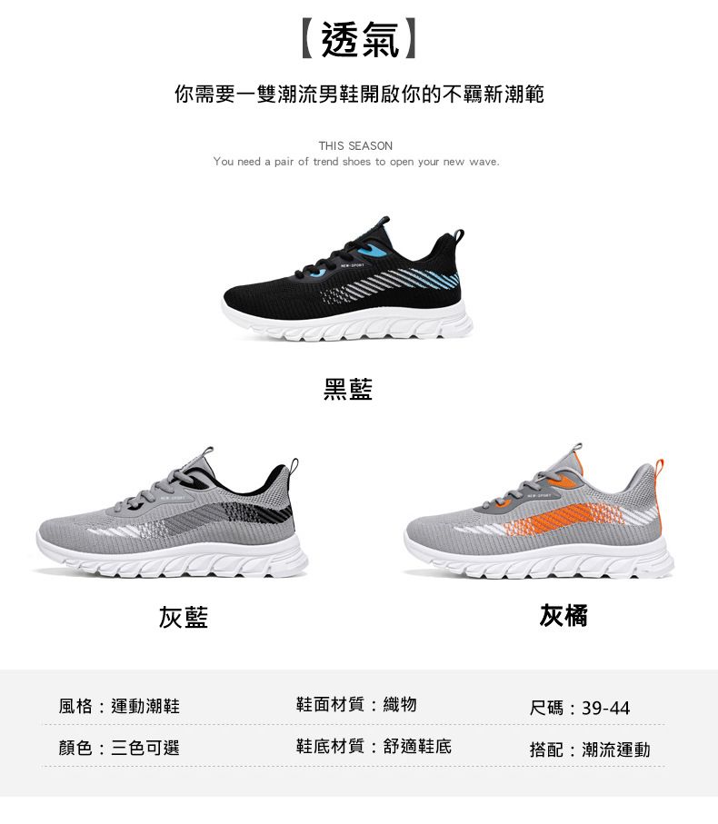 【自由不羈!】舒適透氣耐磨男跑鞋【灰橘色】+【黑藍色】各一雙(優惠400)