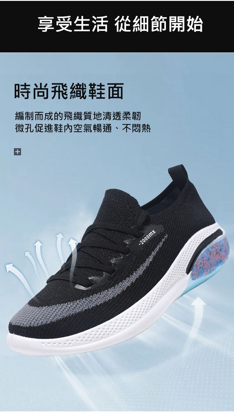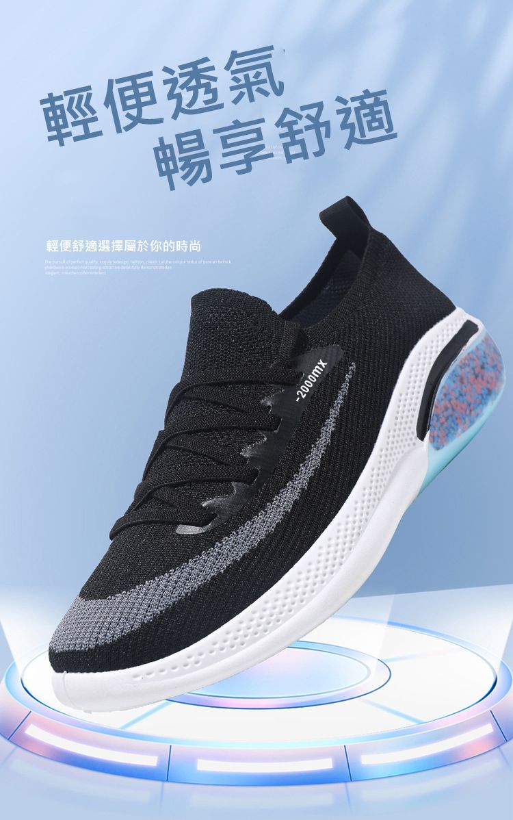 【個性後跟設計!】飛織軟底耐磨透氣男鞋【黑色】一雙