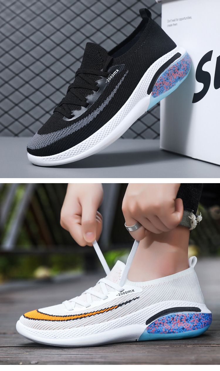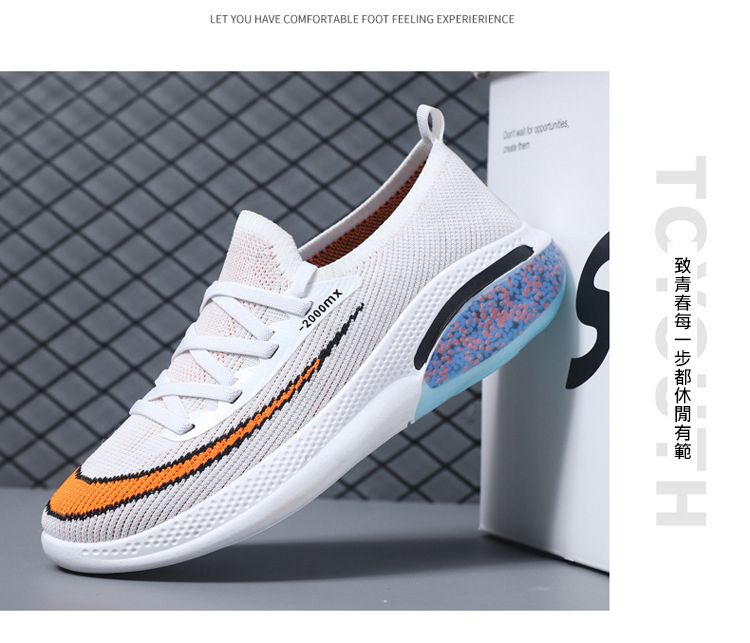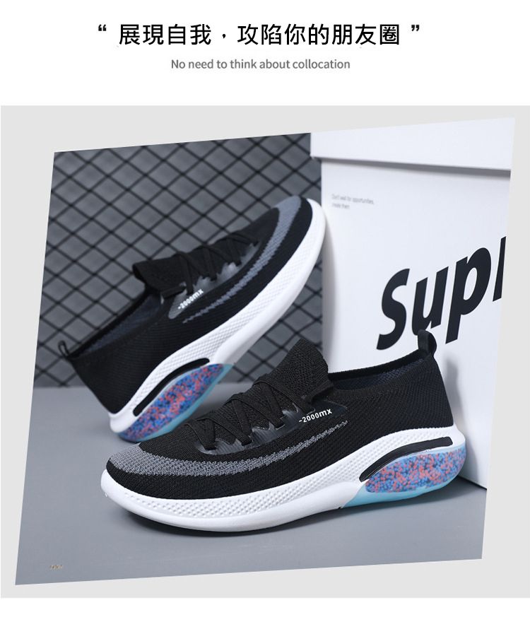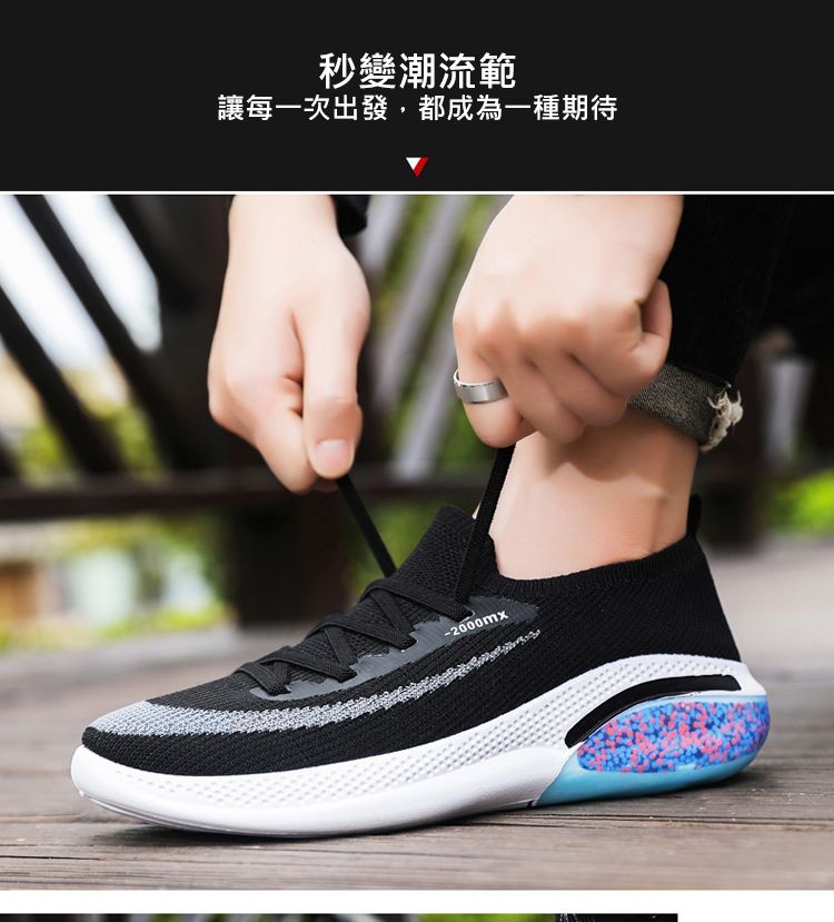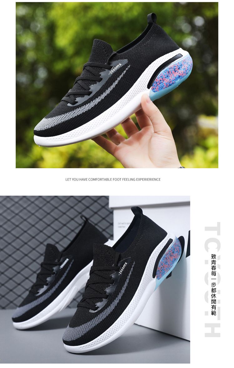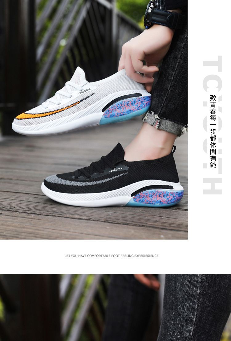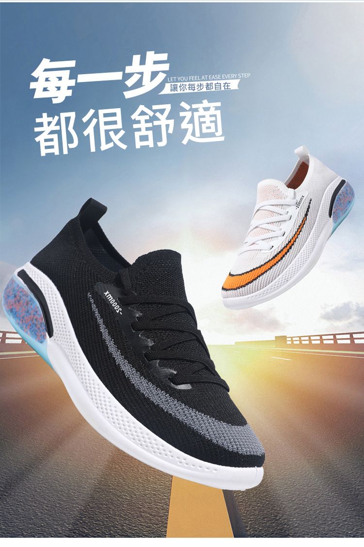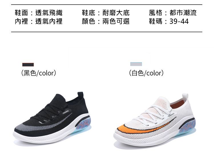 【個性後跟設計!】飛織軟底耐磨透氣男鞋【白色】+【黑色】各一雙(優惠400)