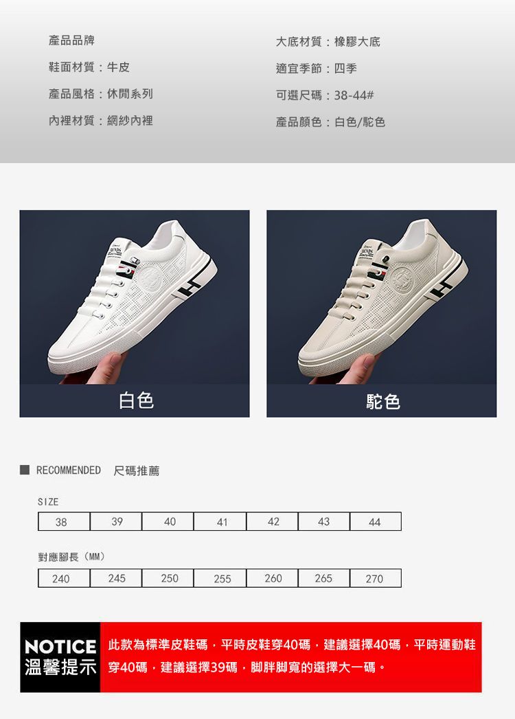 男士舒爽時尚增高百搭板鞋【米色】+【白色】各一雙(優惠400)