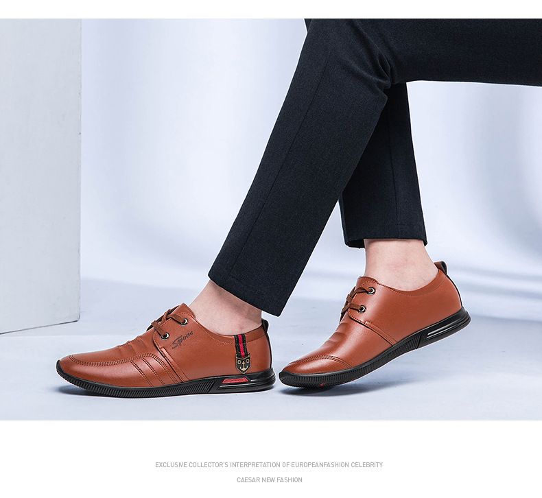 商務軟皮韓版透氣男士皮鞋【買一送一】棕色兩雙