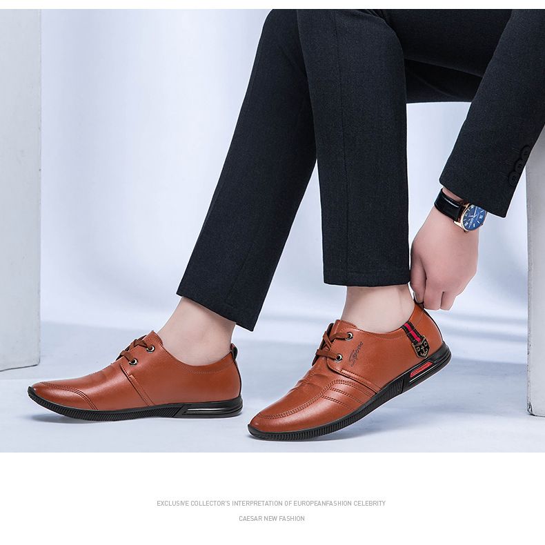 商務軟皮韓版透氣男士皮鞋【買一送一】棕色+黑色各一雙