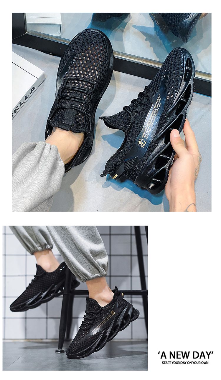 【透氣無色差!】夏季男士網面鏤空運動鞋【黑色】+【湖蘭色】各一雙(優惠400)