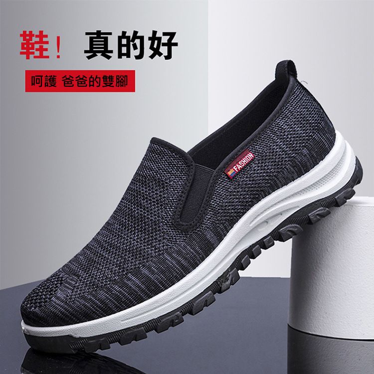 新款軟底耐磨一腳蹬飛織鞋【買一送一】黑色兩雙