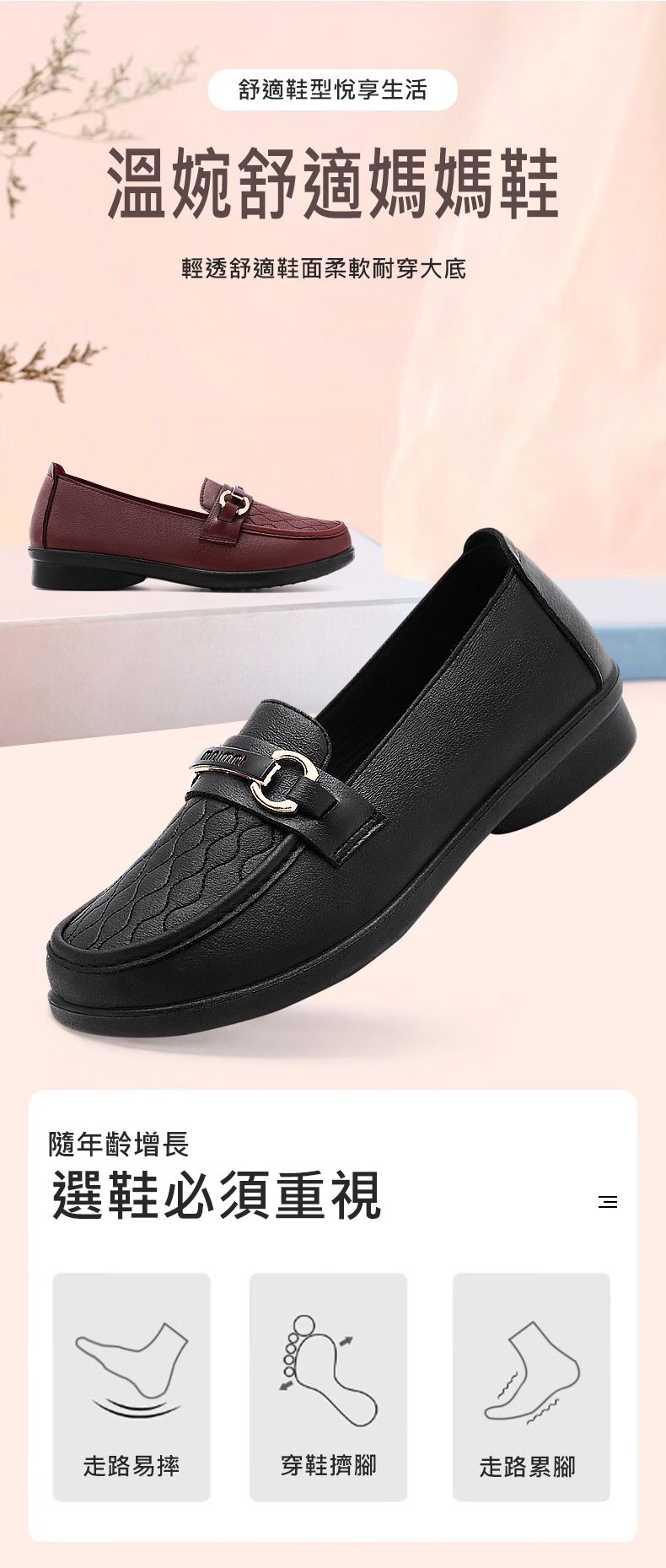 【悅享生活!】溫婉舒適媽媽鞋【黑色】+【紅色】各一雙(優惠400)