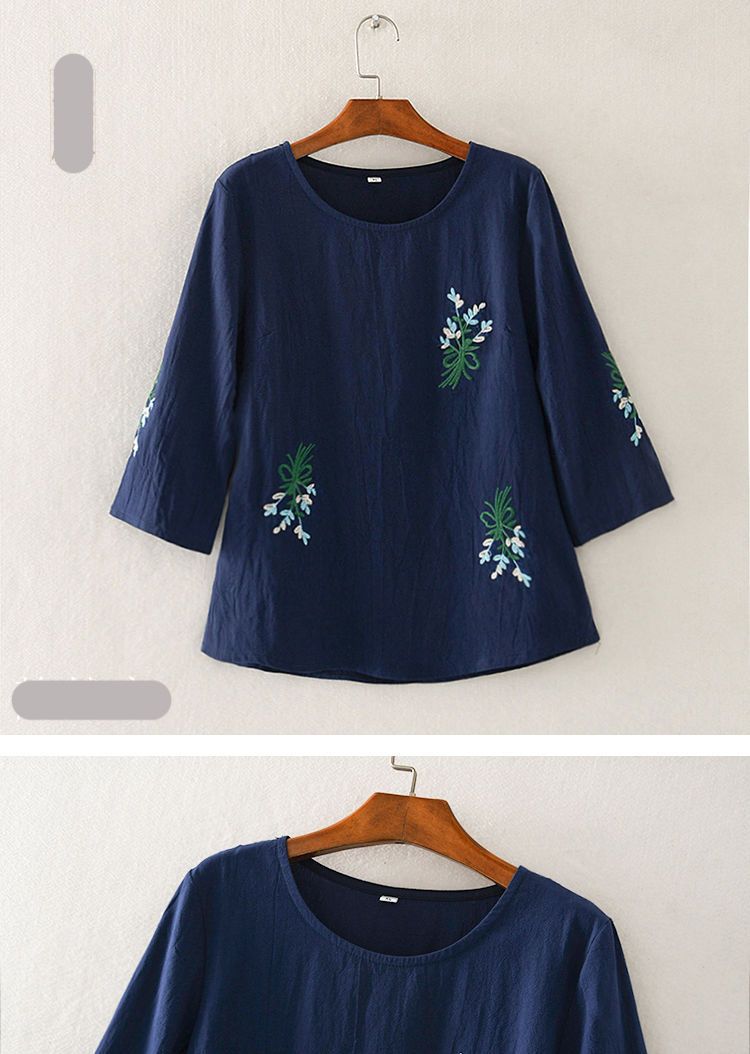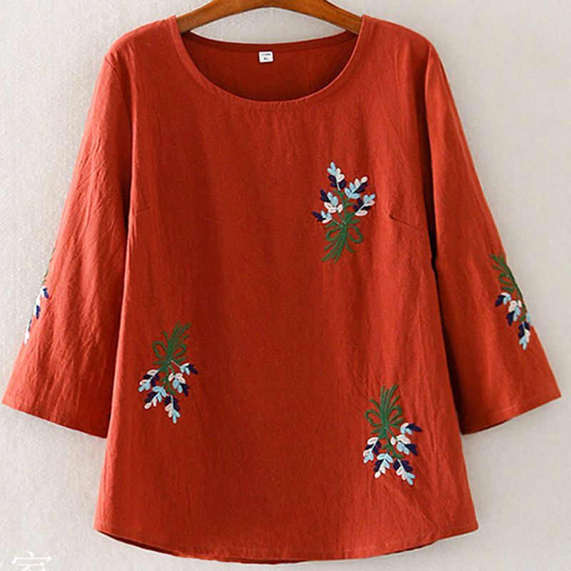 透氣涼爽春夏刺繡女士T恤【買一送一】【紅色】+【青色】各一件(每件499元)