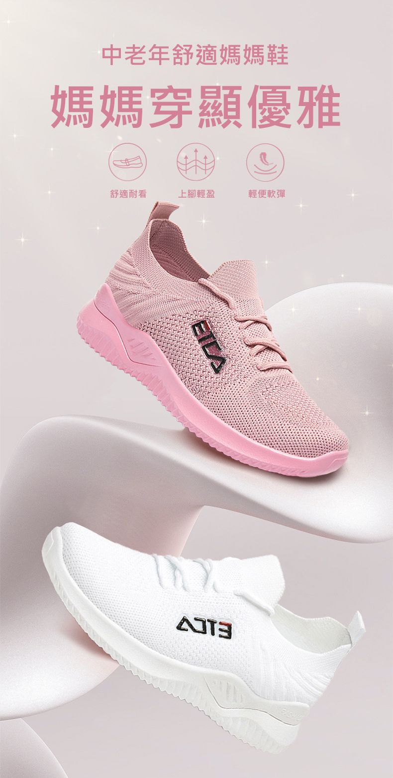 媽媽透氣舒適網鞋【買一送一】【白色】+【粉色】各一雙