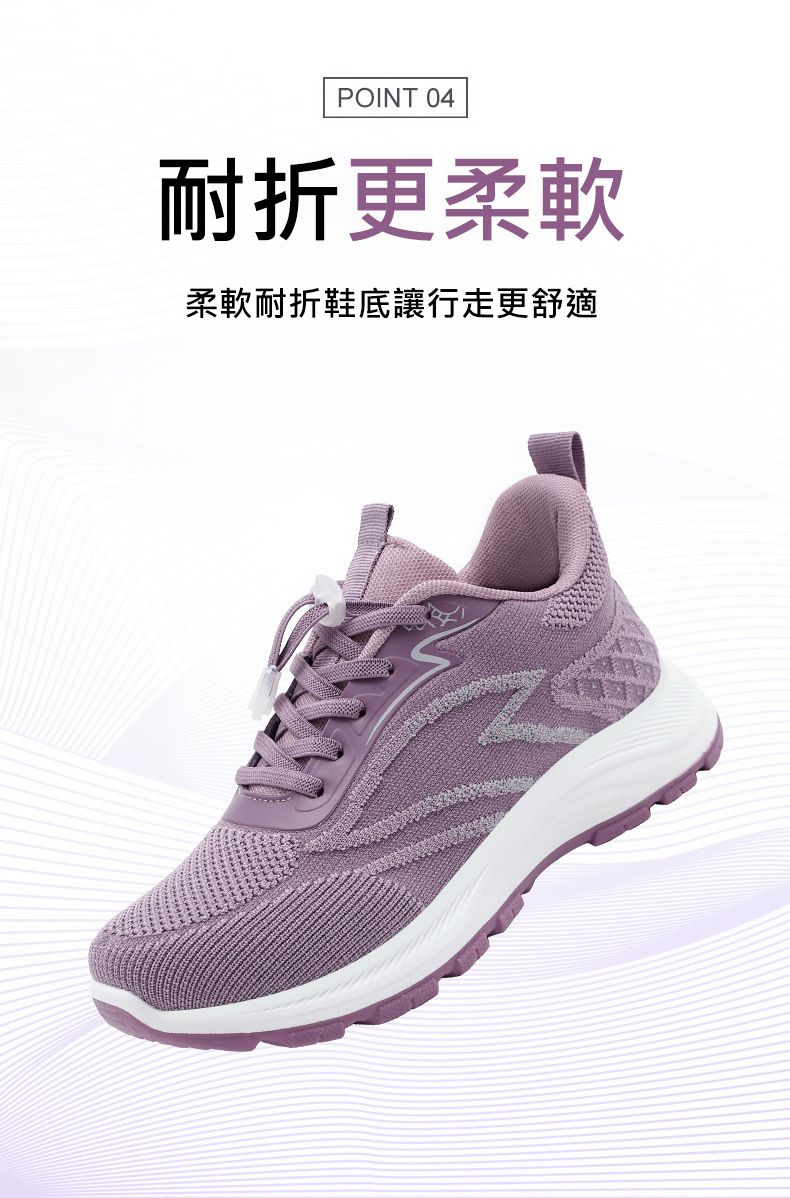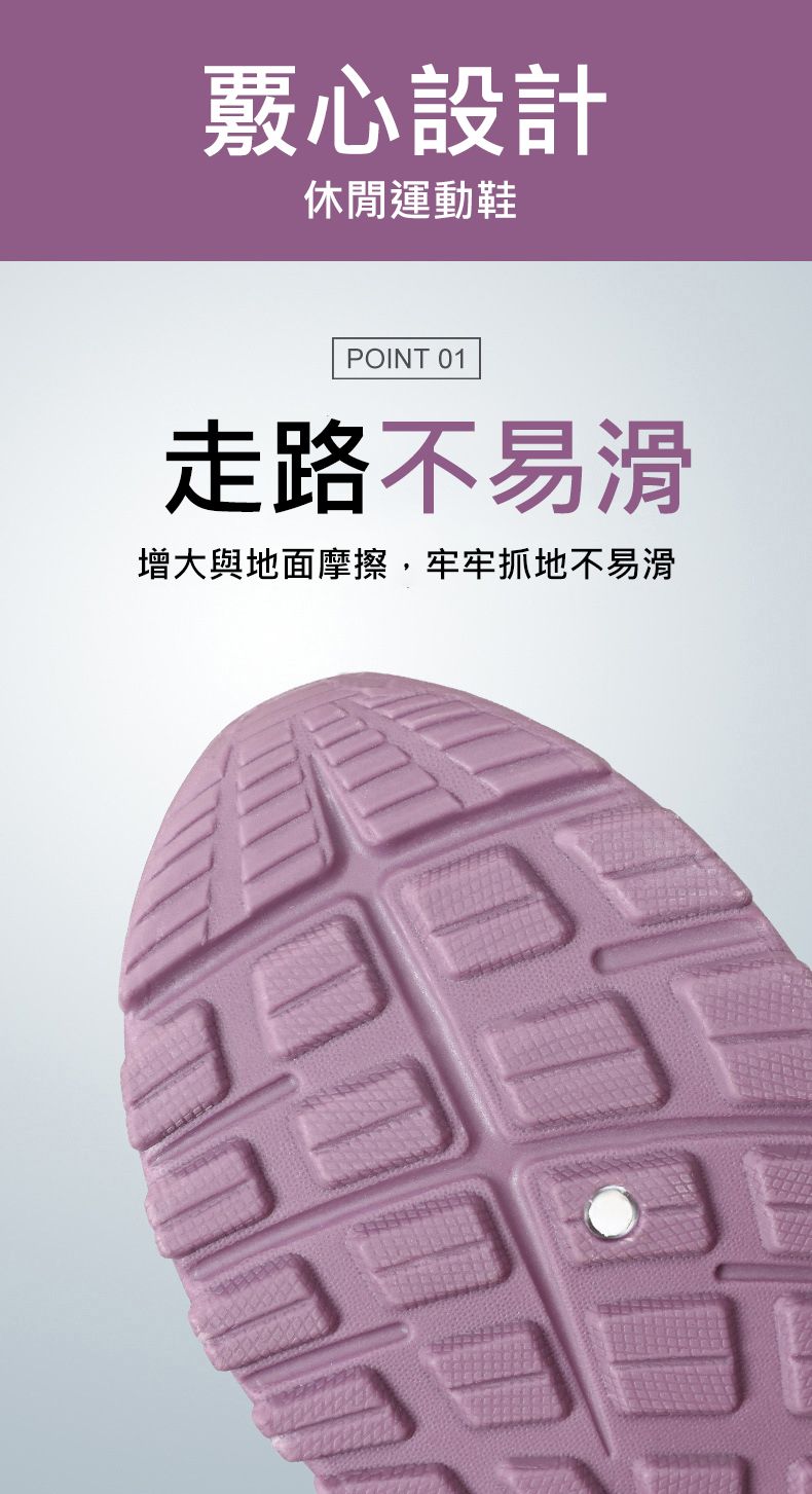 輕便緩震柔軟透氣防滑健步鞋【香芋紫】一雙
