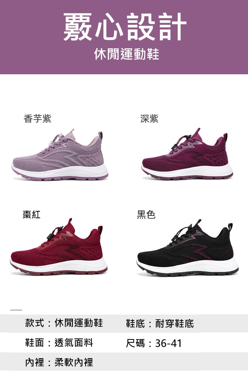 輕便緩震柔軟透氣防滑健步鞋【深紫色】+【香芋紫】各一雙(到手兩雙,每雙均價798元!)