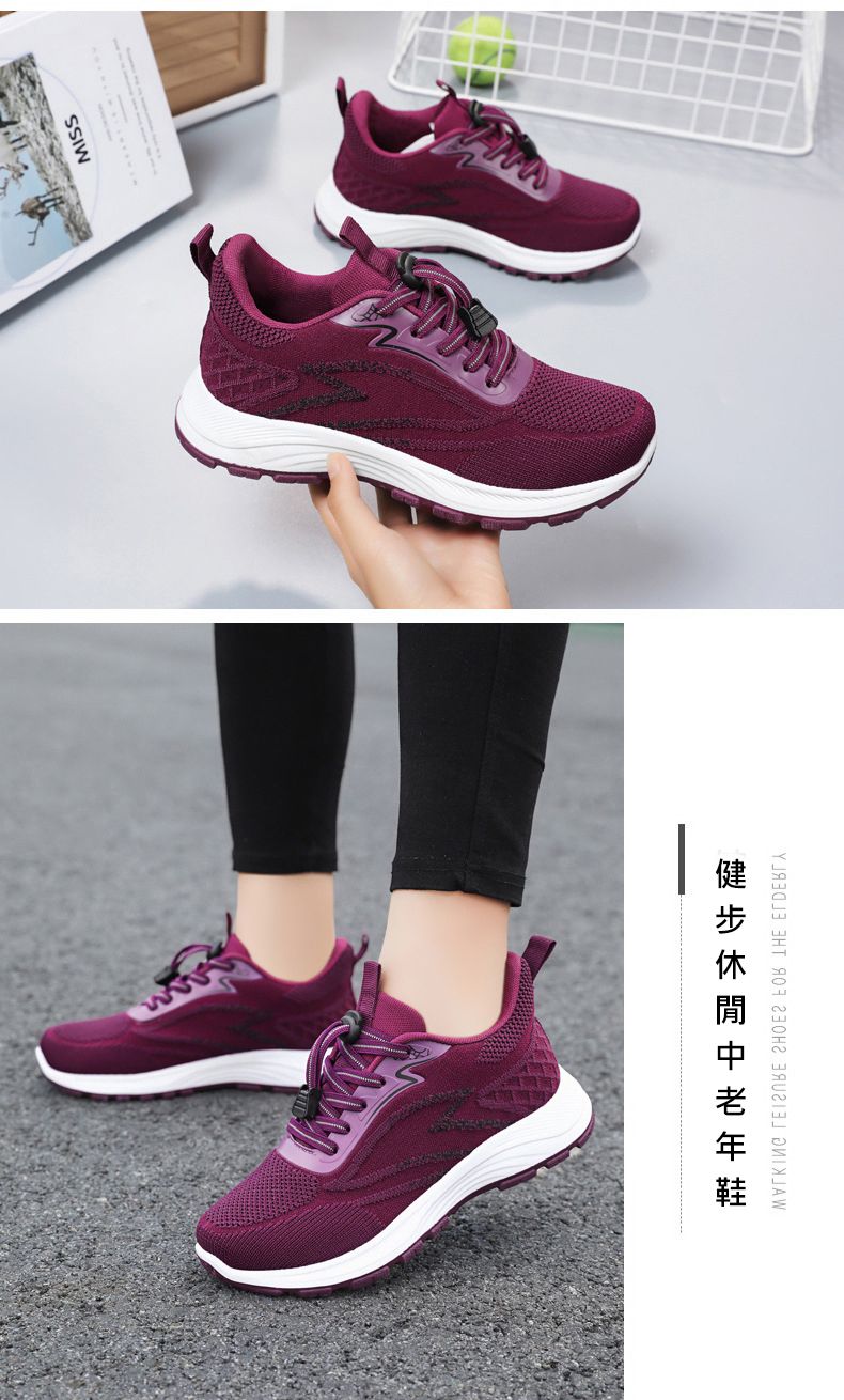 輕便緩震柔軟透氣防滑健步鞋【棗紅色】+【香芋紫】各一雙(到手兩雙,每雙均價798元!)