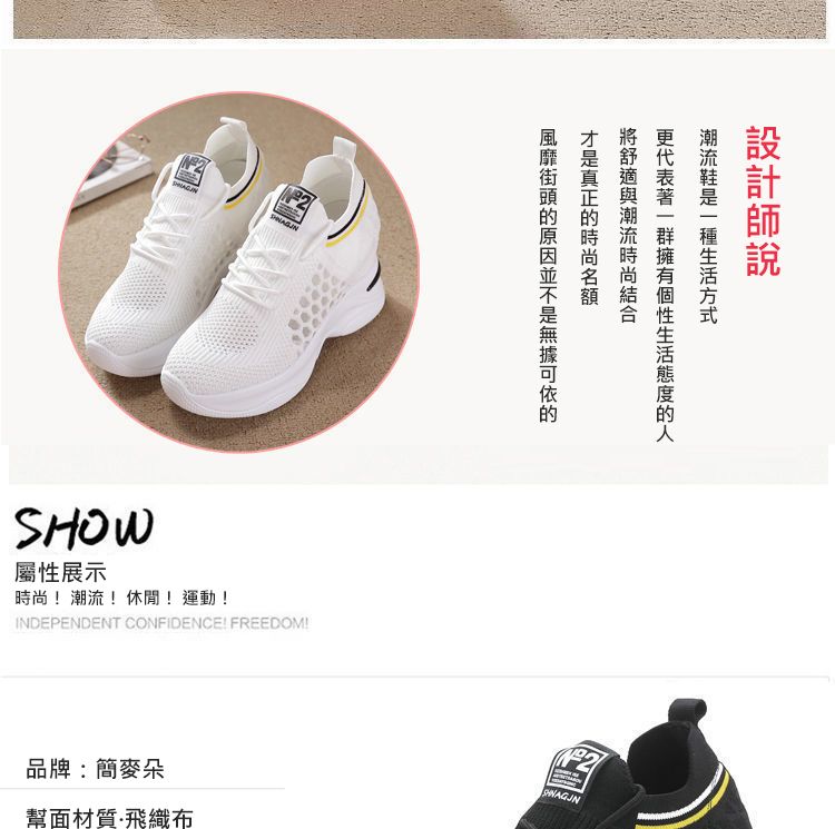 【收貨不值退全款!】透氣顯瘦增高女鞋【白色】+【黑色】各一雙(優惠400)