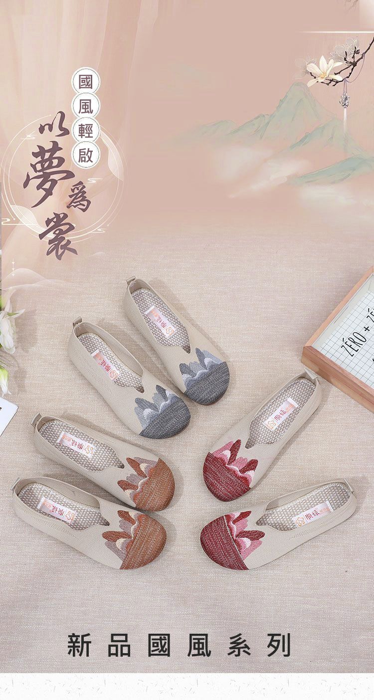 【細膩山水繡花】中老年媽媽鞋【紅色】+【灰色】各一雙(優惠400)