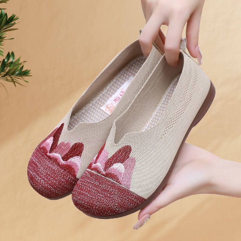 【細膩山水繡花】中老年媽媽鞋【咖色】一雙
