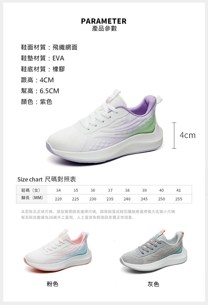 【朋友們都在買!】厚底增高透氣新款女鞋【灰色】+【紫色】各一雙(優惠400)