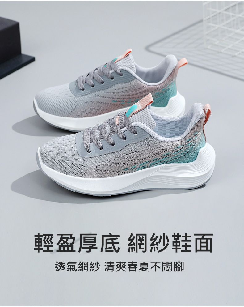 【朋友們都在買!】厚底增高透氣新款女鞋【粉紅色】+【灰色】各一雙(優惠400)