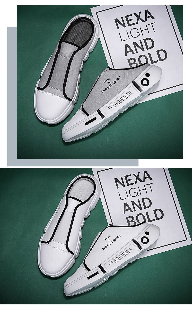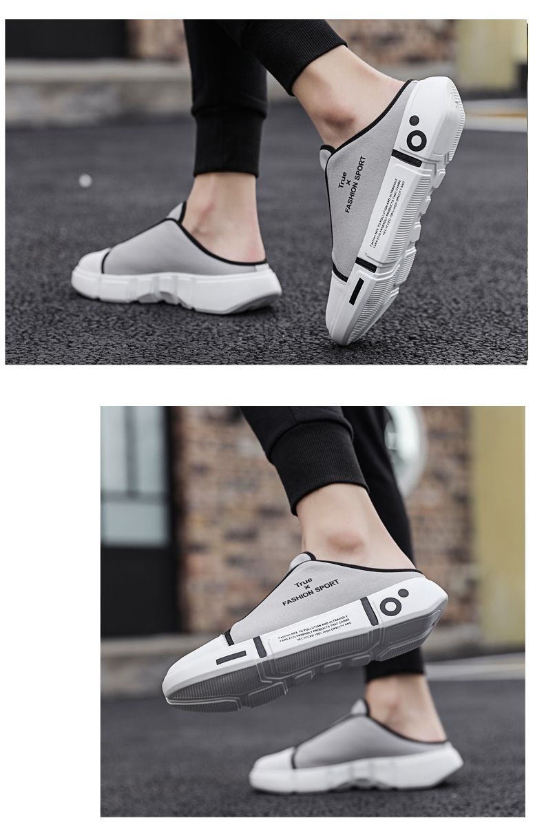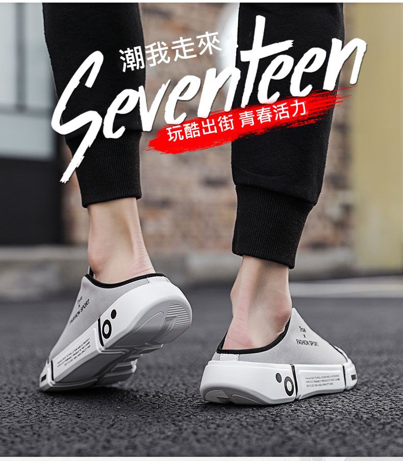 新款透氣懶人休閒一腳蹬半拖鞋【白色】+【灰色】各一雙(優惠400)