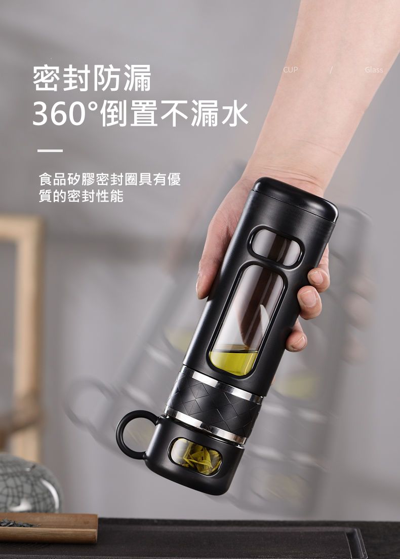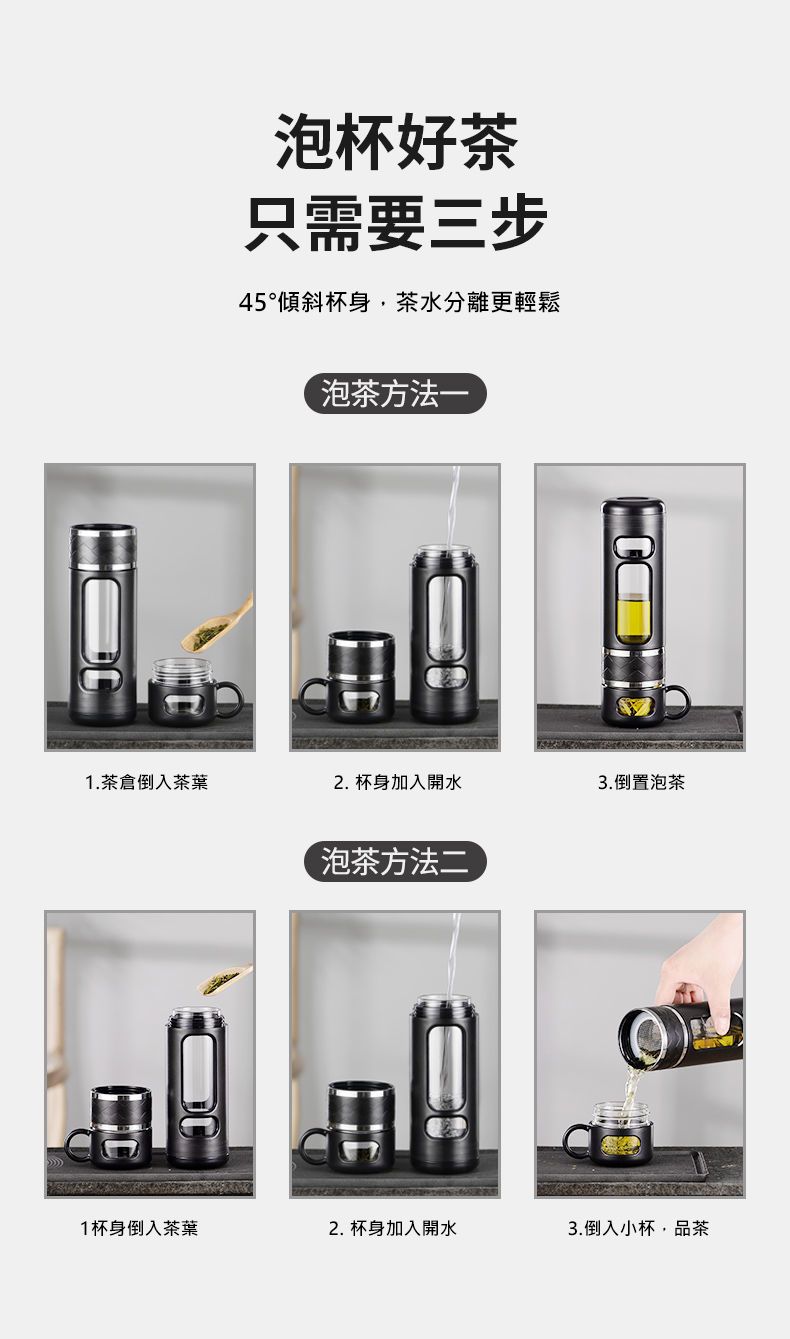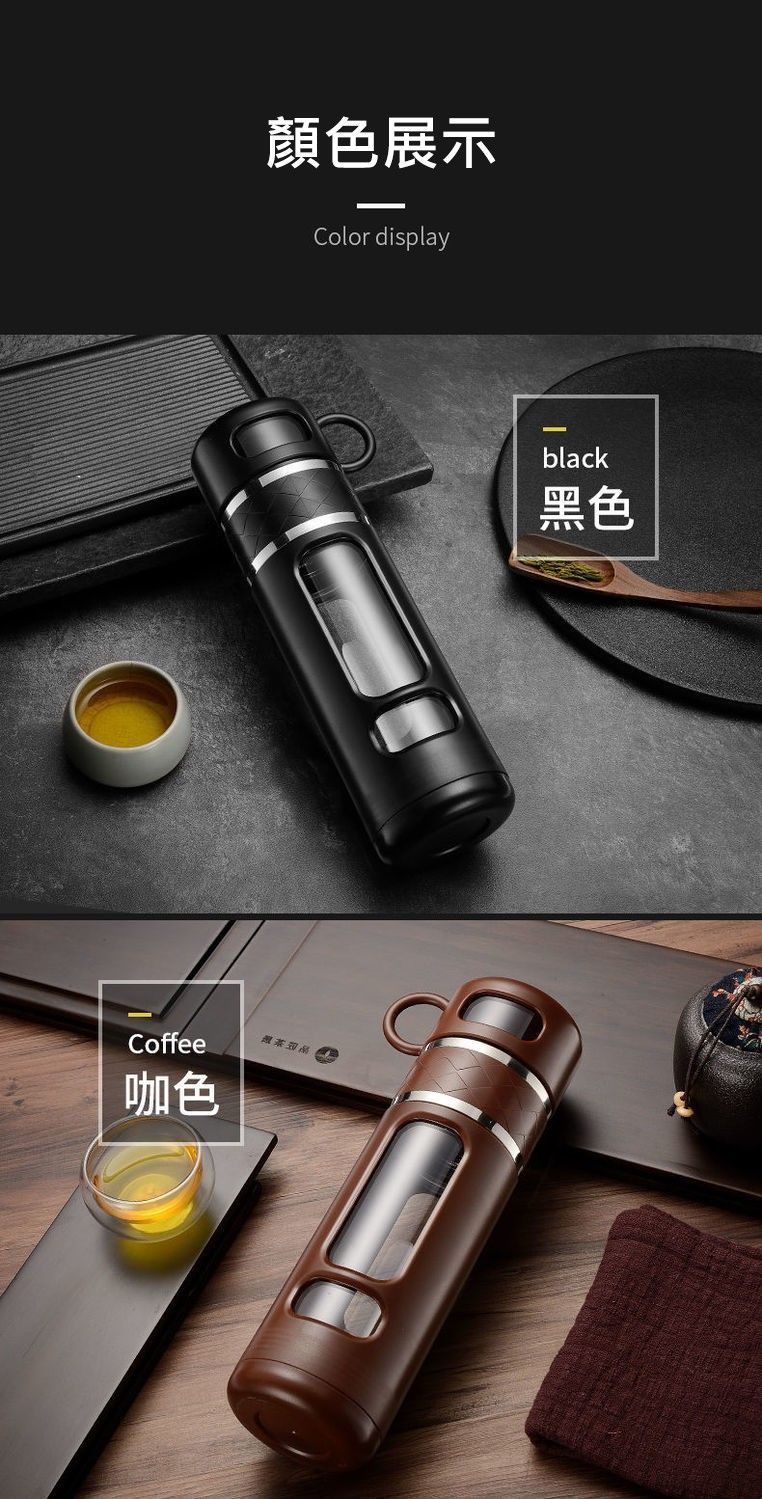 茶水分離隔熱帶手柄水杯【黑色】+【咖色】各一組(優惠400,每組均價798元!)