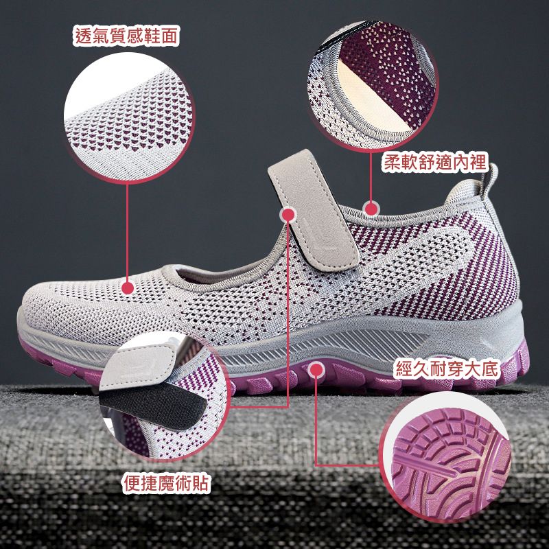 女士舒適涼爽透氣健步鞋【買一送一】【黑紫色】+【棗紅色】各一雙