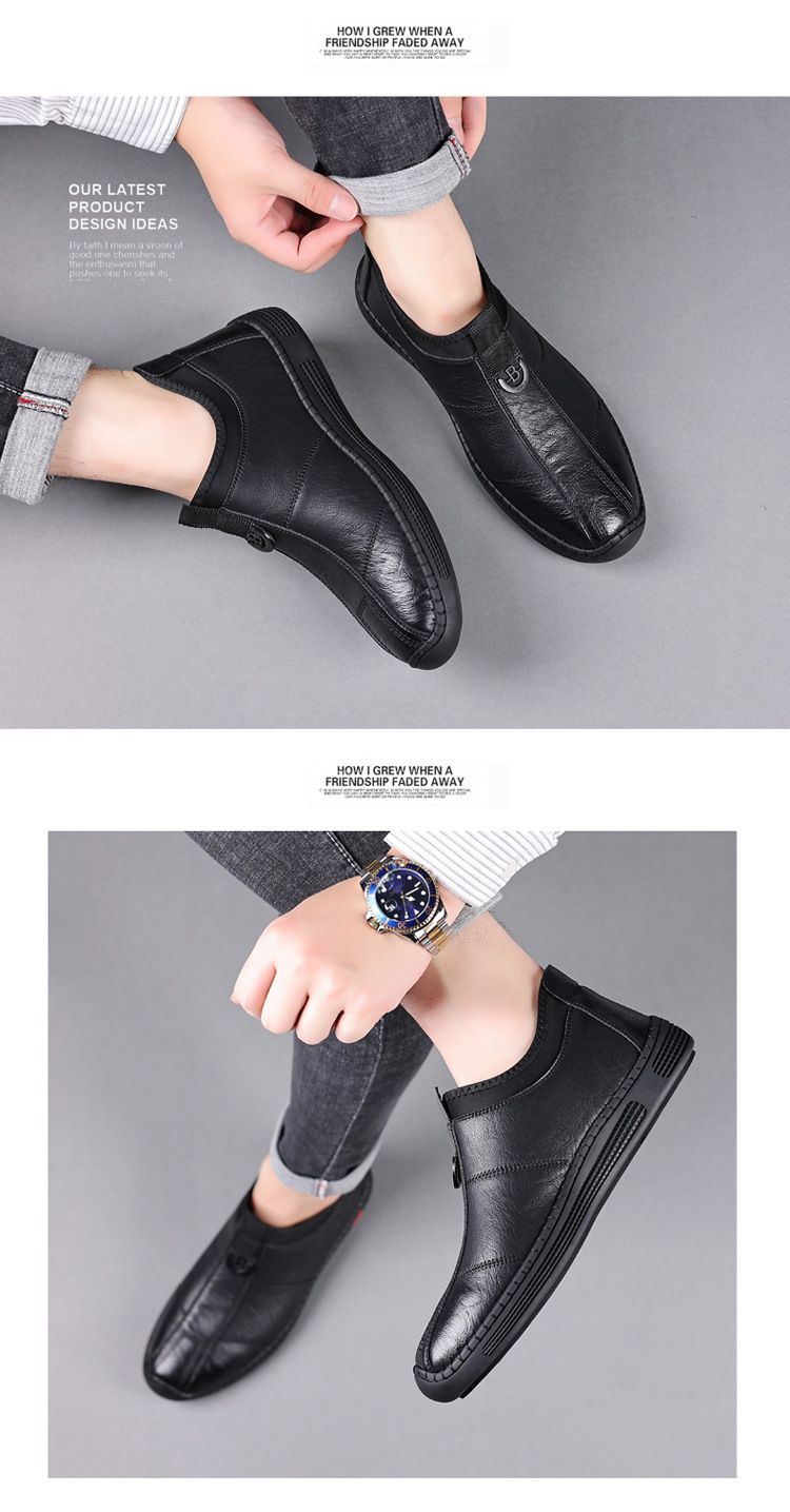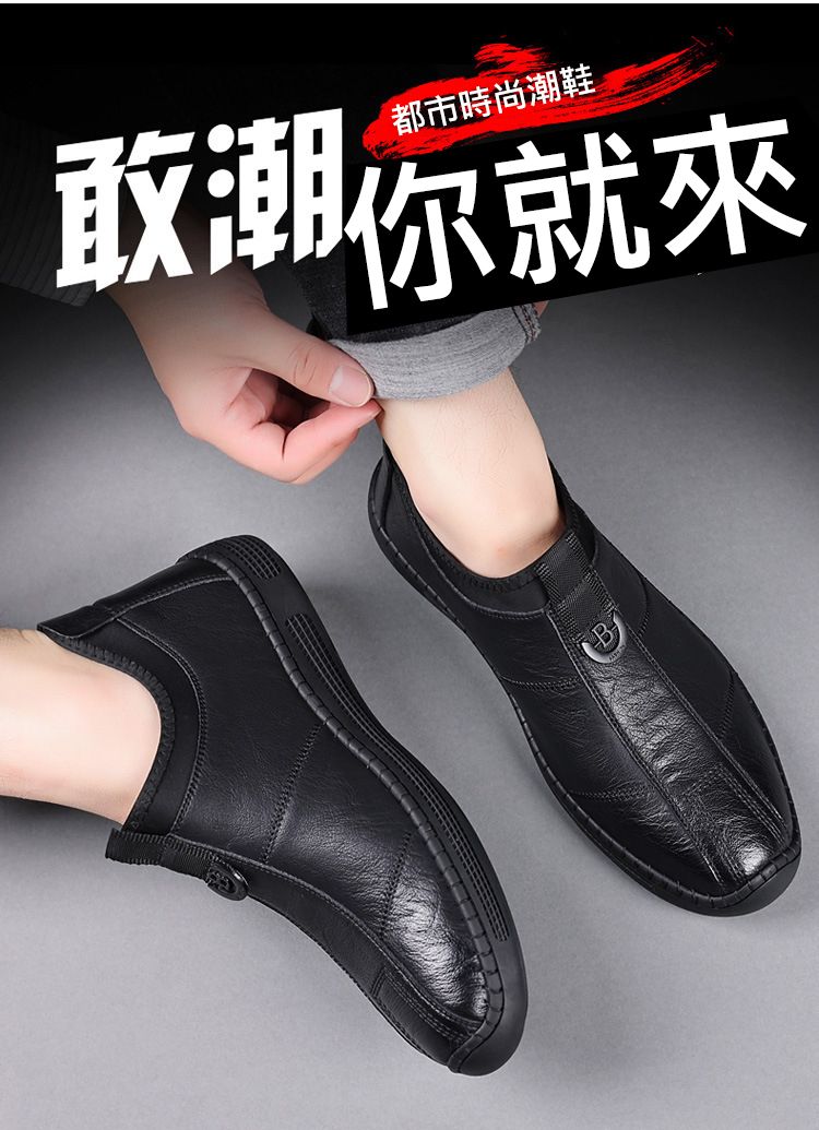 【手工上線,拒絕開膠!】輕質透氣時尚拼接便捷套腳軟皮鞋【黑色】一雙