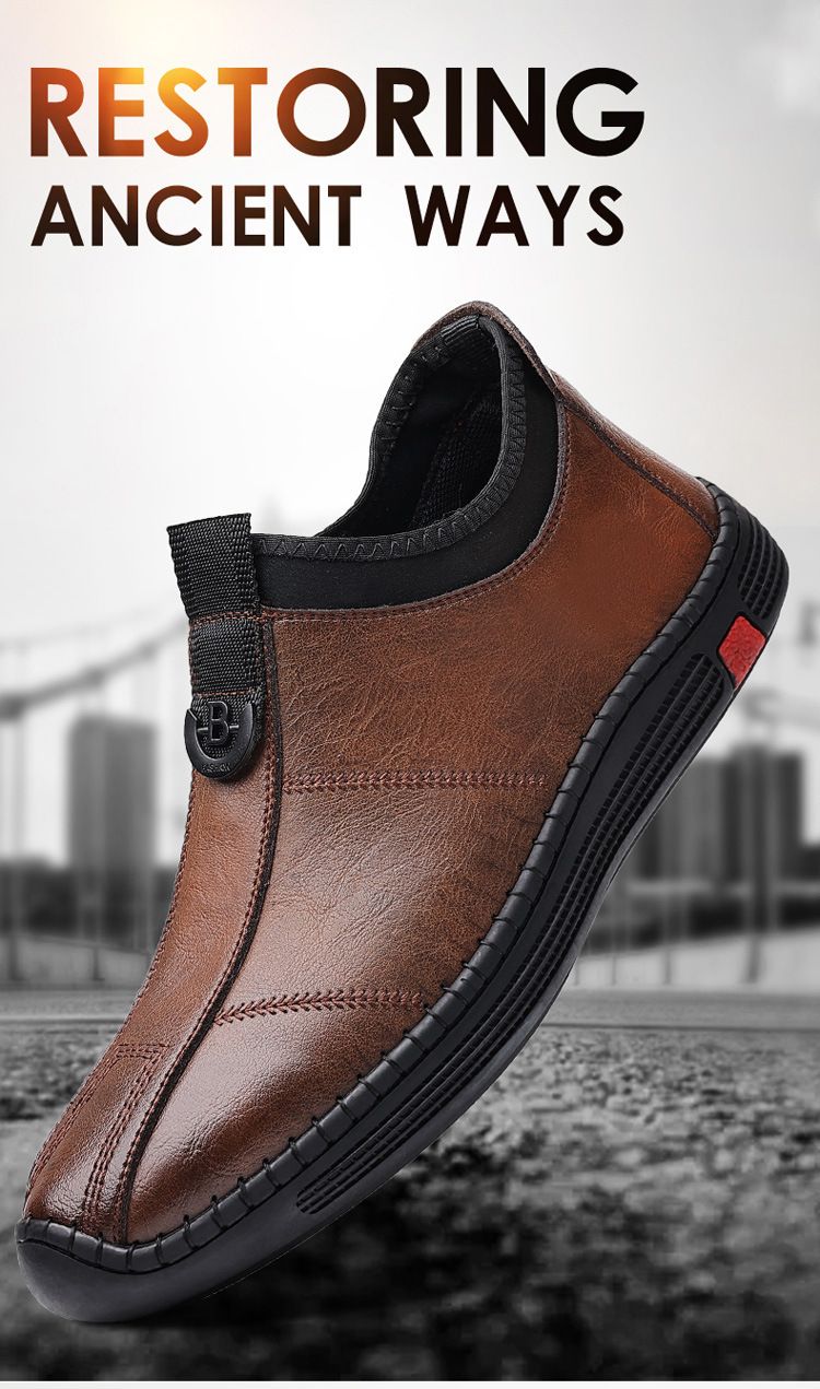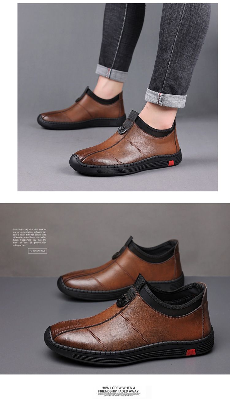 【手工上線,拒絕開膠!】輕質透氣時尚拼接便捷套腳軟皮鞋【黑色】+【棕色】各一雙(優惠400)