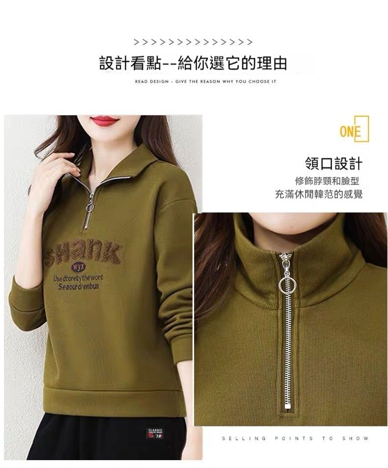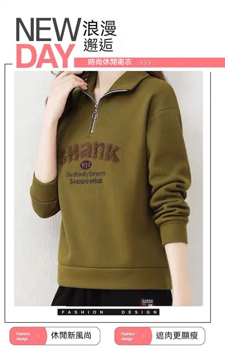 女士韓版衛衣【買一送一】【姜黃色】+【墨綠】各一件(每件低至649元)
