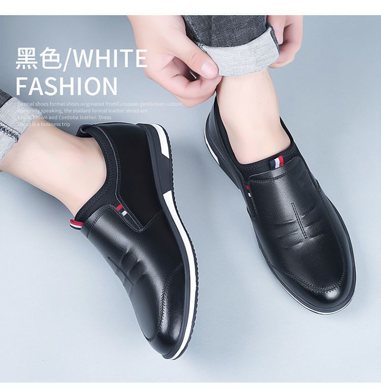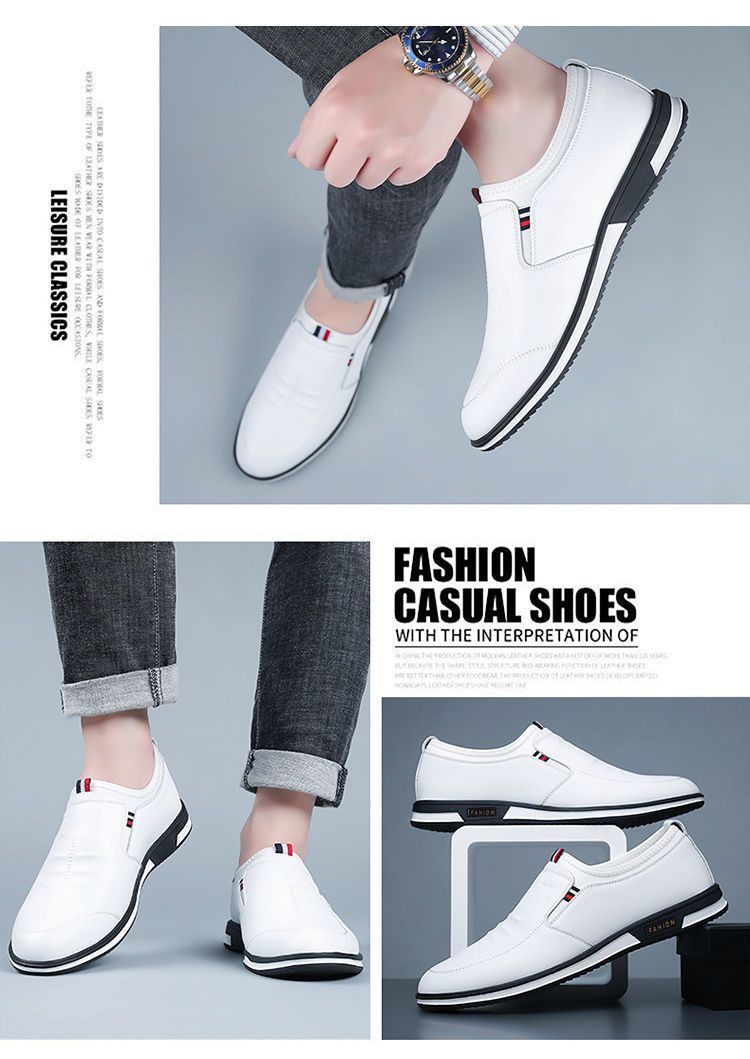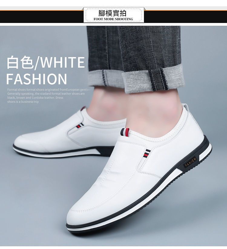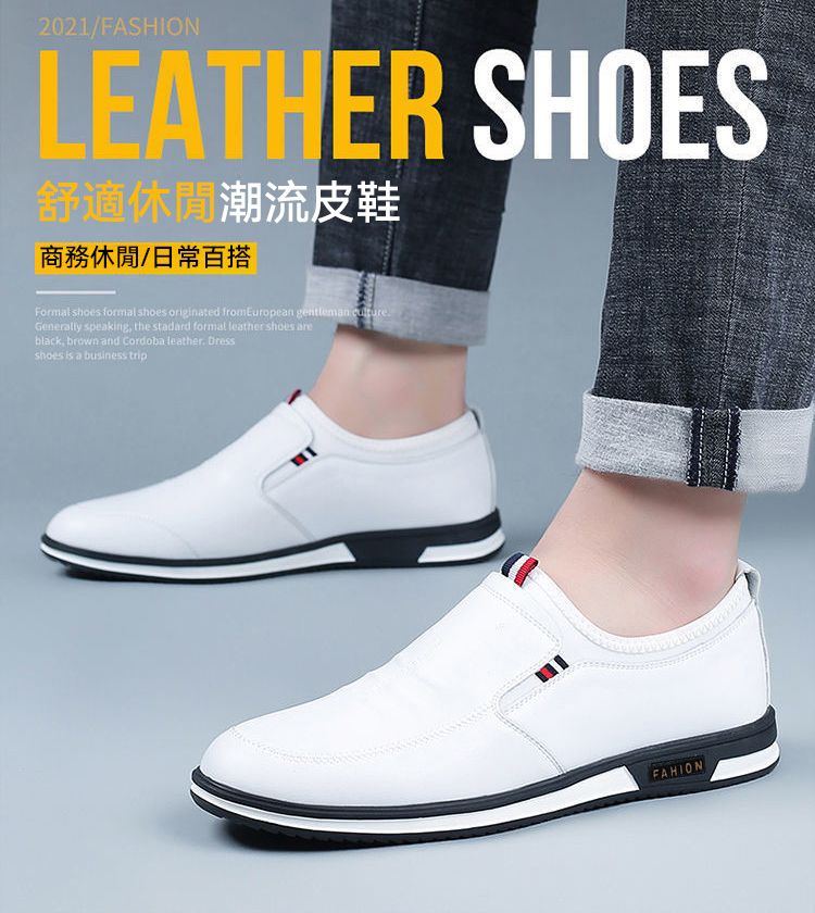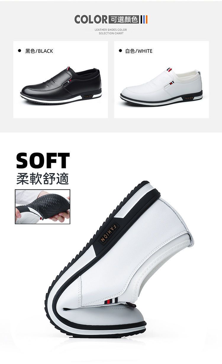 男士舒適休閒潮流皮鞋【限時買一送一】【白色】+【黑色】各一雙
