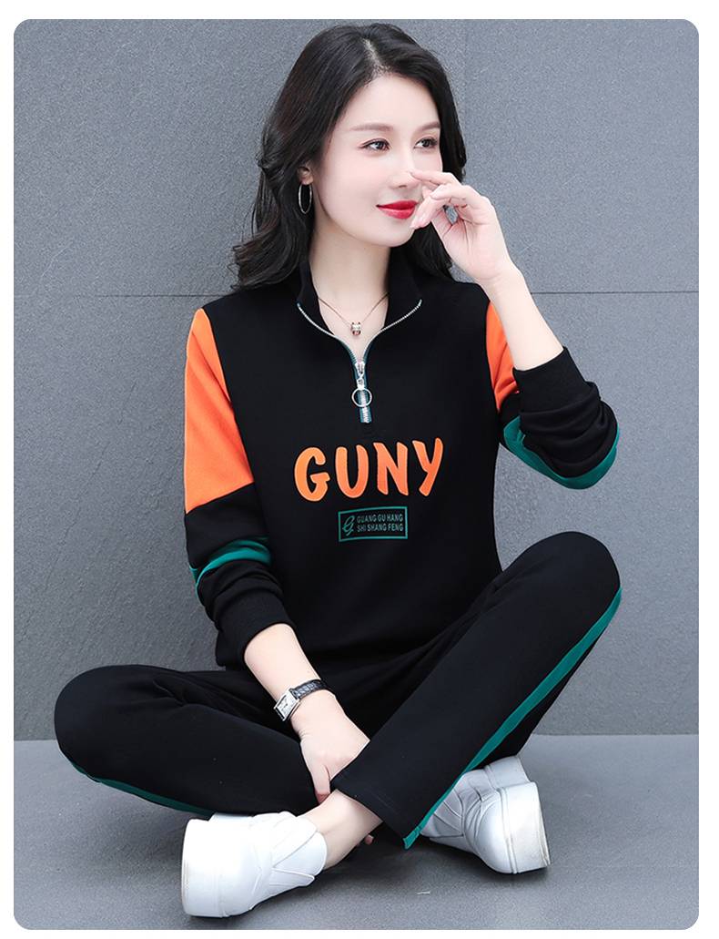 字母印花休閒衛衣長褲兩件套【黑色】+【杏色】各一套(優惠400,每套798)