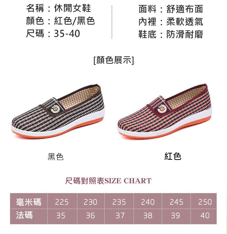 女士防滑軟底透氣休閒鞋【紅色】一雙=698