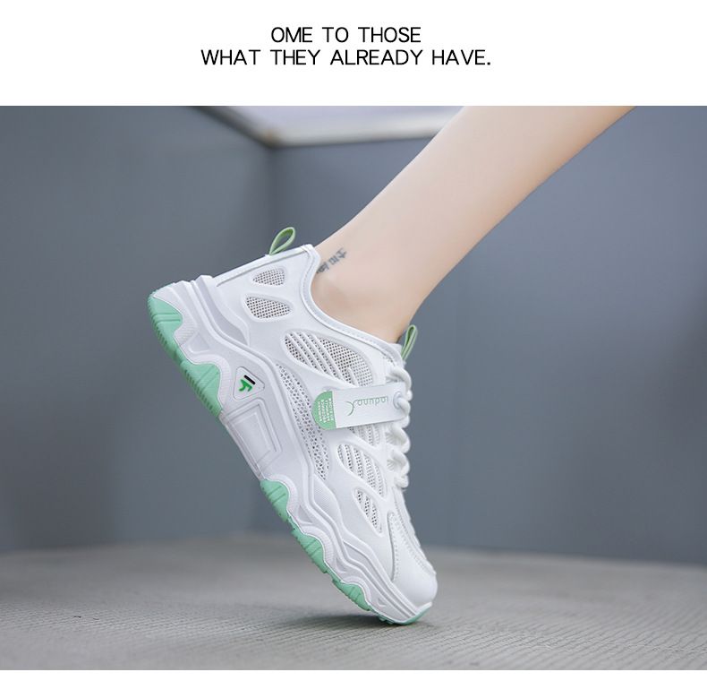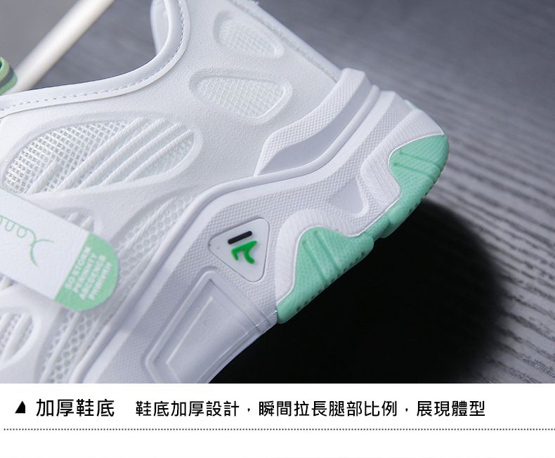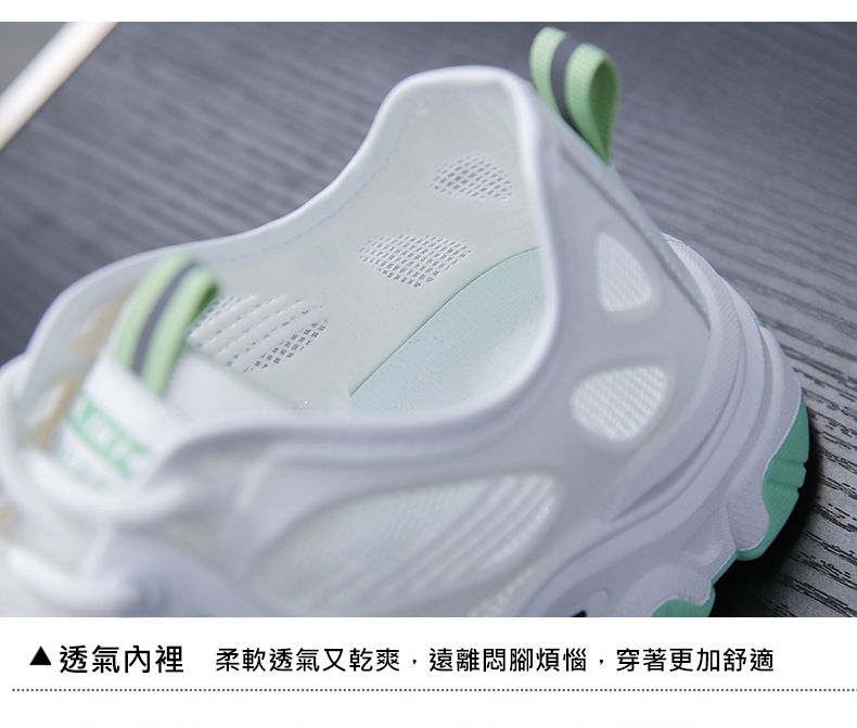 【親膚柔軟,透氣吸汗!】韓版女士毛毛蟲老爹鞋【白綠色】一雙