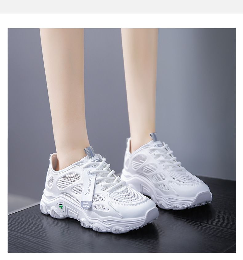 【舒適增高5cm!】新款女士透氣休閒輪胎底老爹鞋