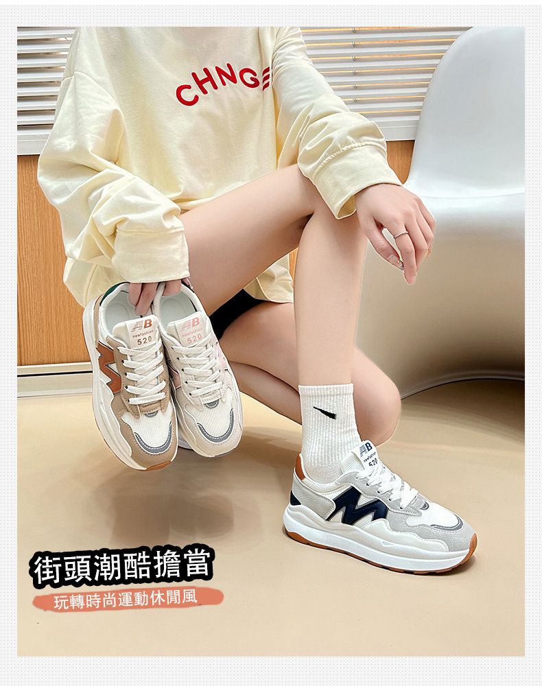 【舒適增高5cm!】新款女士透氣休閒輪胎底老爹鞋