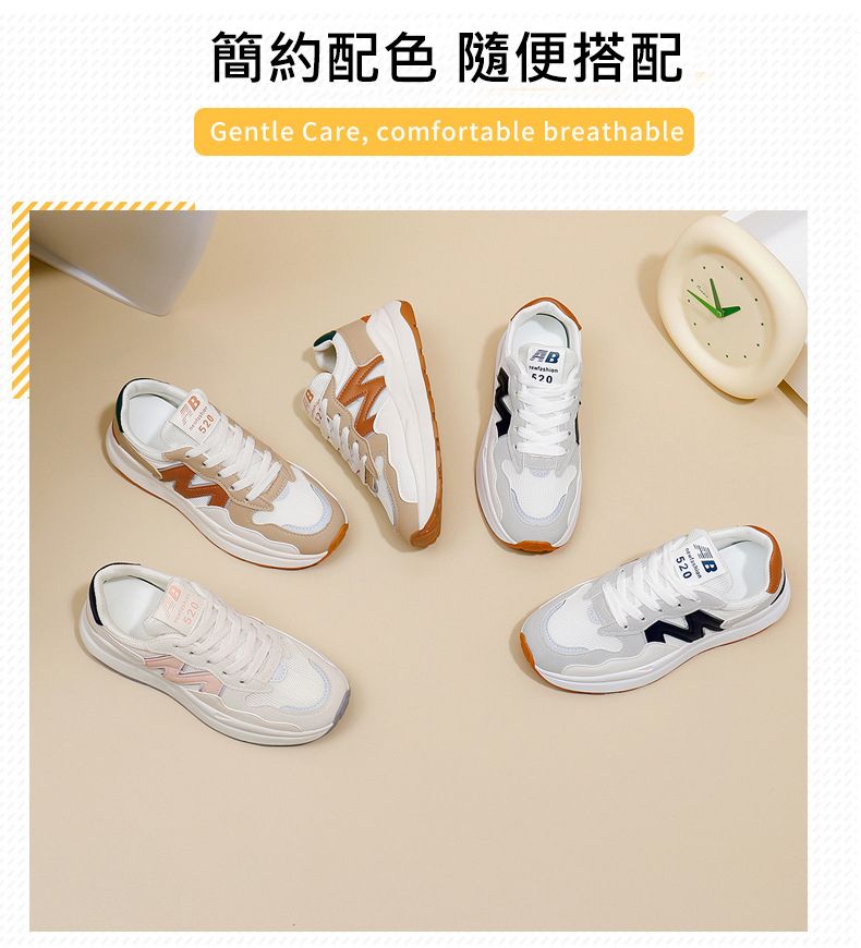 【簡約不簡單!】女士4cm增高休閒運動鞋【單網卡其色】+【單網米粉色】各一雙(優惠400)