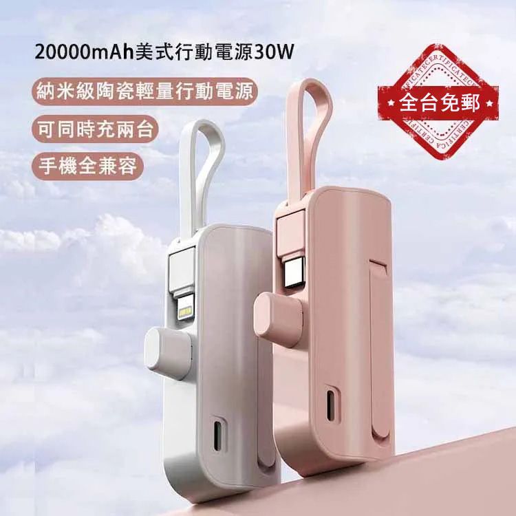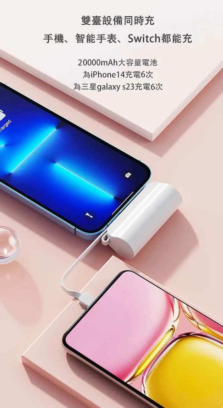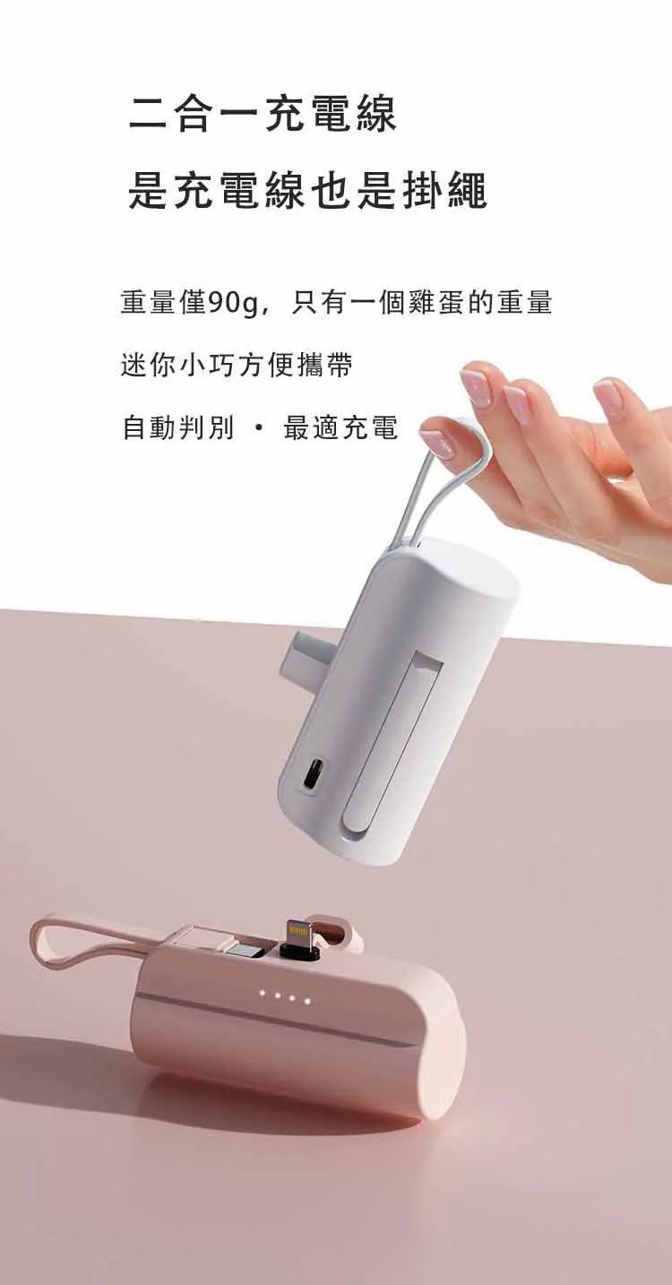 便攜膠囊移動電源【白色】(蘋果插頭+Typec線)一組