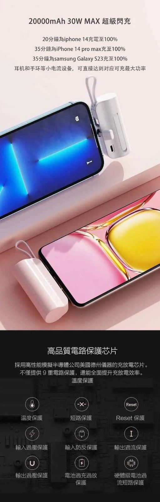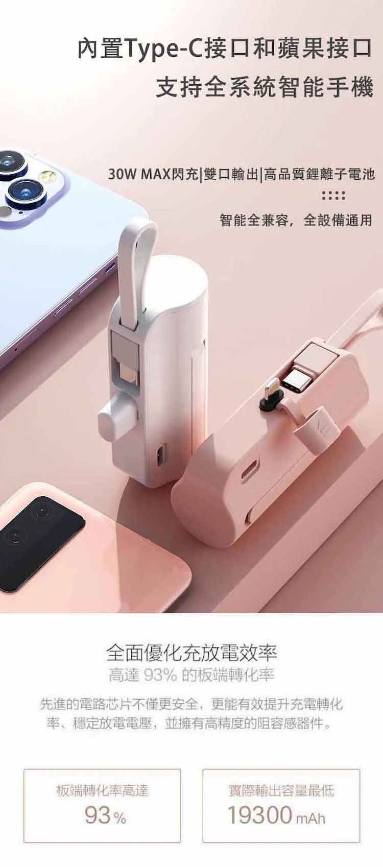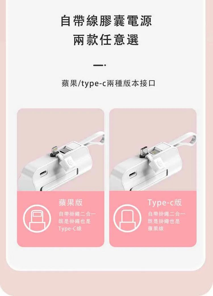 便攜膠囊移動電源【粉色】(蘋果插頭+Typec線)一組