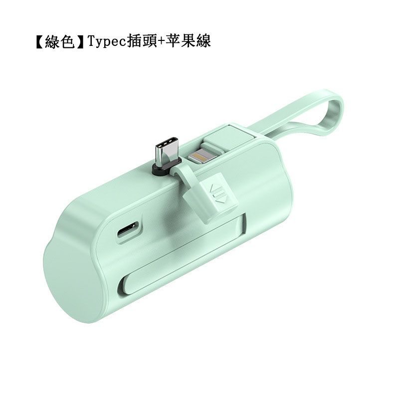 便攜膠囊移動電源【綠色】(蘋果插頭+Typec線)一組