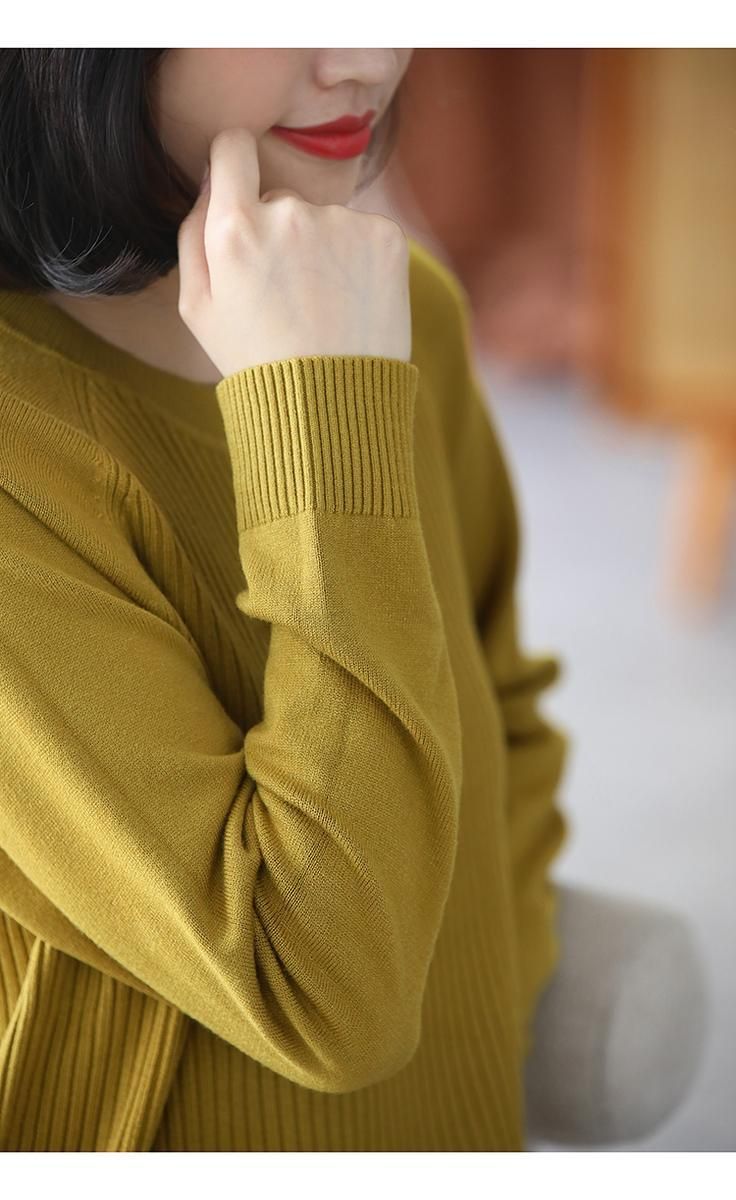 秋冬純棉女士打底針織衫【買一送一】【駝色】+【黃色】各一件(每件低至649元)