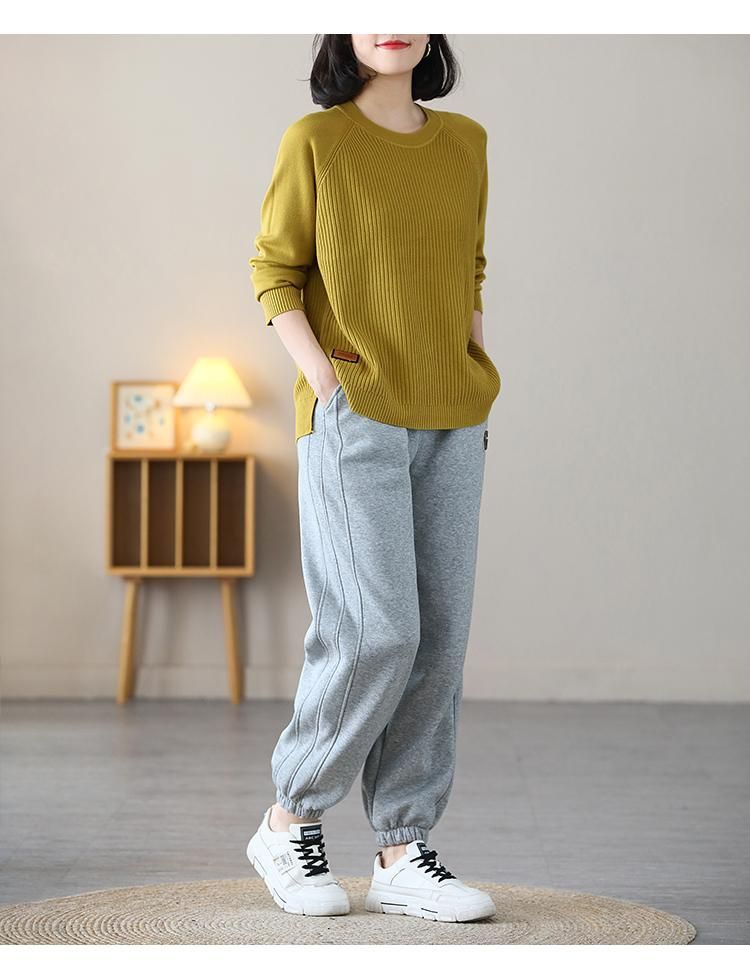 秋冬純棉女士打底針織衫【買一送一】【灰色】+【黃色】各一件(每件低至649元)