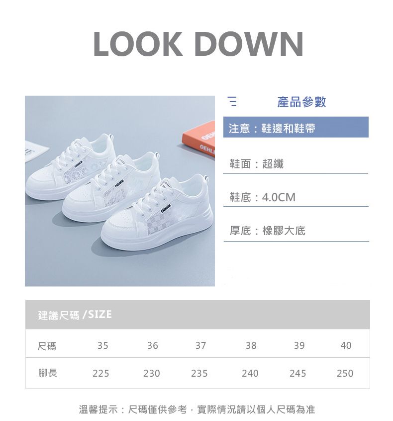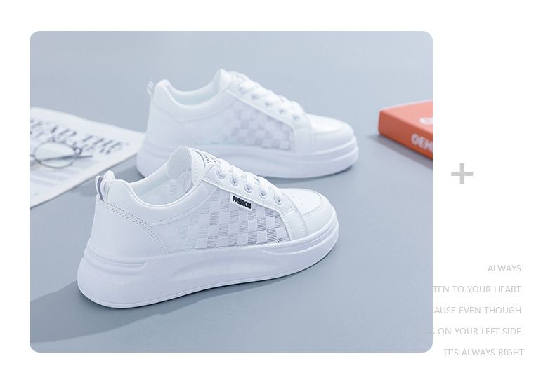 【超透氣!】夏季女士薄款網面增高休閒運動鞋【棋盤圖案】一雙