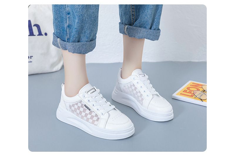 【超透氣!】夏季女士薄款網面增高休閒運動鞋【棋盤圖案】+【千鳥圖案】各一雙(優惠400)